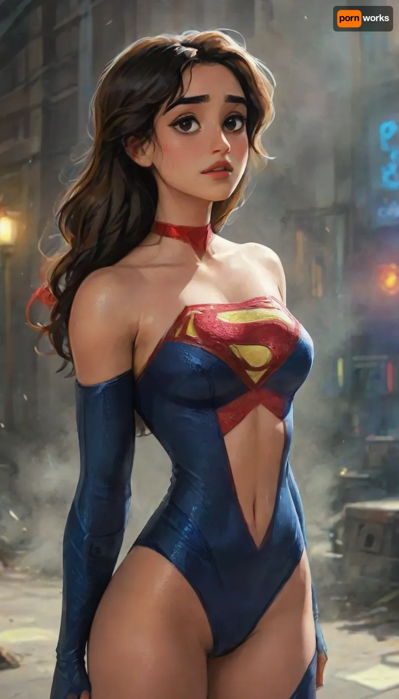 Photorealistic with perfect details, Cinematic, Masterpiece, HD, Sexy CGI. Beautiful woman "Disha Patani", Platinum blonde hair, sparkling bright glowing Blue eyes, expressive face. dishap, <lora:dishap:1>, Wearing a intricate costume, ("Full Sexy Armor"), a costume that embodies the form of "Supergirl-DC Comics", (Armor Chest and Thighs open), . Futuristic Costume Design. Street Fashion clothing, Wearing a ripped denim jacket and a tight yoga pants. - High heels are very detailed, hand guards are very detailed. The costume is White with a combination of Gold and Red. - The chest and thighs are clearly visible. Perfect hourglass body curves, natural breasts, plump hips, flat and slim stomach, abs, big thighs, large buttocks. There is a picture of the "SuperGirl" Logo lit up. highlydetailedbody, realisticface, highlydetailedhair, insanelydetailed, 8K.highdetailedskin, highresolution, perfectfingers. DCEU, Supergirl, <lora:Supergirl:.5>, Pose, Action pose Walking in the middle of a quiet and deserted Metropolis city square. War scars, destroyed cities, muddy and shabby streets. Dark night, black clouds, dim light, thick black smoke. Tense atmosphere. "FANTASY WORLD", (j_cartoon:1.5), Drawing, <lora:samdoesarts1.1-000030:.4>, <lora:J_cartoon:.3>, <lora:Animated_Concept:.4>