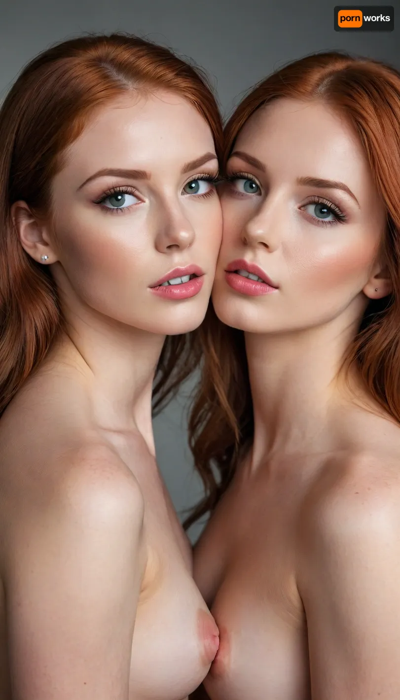 full body shot, symmetrical, two gorgeous 18 yo red head identical twins, full body view, nude, kissing, fingering vagina, touching each other, sensual, lovers, identical twins, high detail faces, Ultra-Realistic Photography, Flickr Trending, Pinterest Trending, Insanely Detailed & Intricate, Realistic, Authentic, Genuine, Natural, Cinematic Lighting, Dramatic, Theatrical, Atmospheric, Evocative, Mood Setting, Award Winning Photography, Acclaimed, Recognized, Famous, Honorable, Award Winning, Sharp Focus, Crisp, Clean, Precise, Clear, Distinctive, Masterpiece Photography, Iconic, Exceptional, Unusual, Stunning, Gorgeous, Studio Photography, Controlled, Polished, Professional, Exquisite, Perfect, Nikon, High Quality, Reliable, Durable, Precision Engineering, Cutting Edge, Unfiltered Photography, Natural Looking, Unedited, Raw, 8K Photography, High Resolution, Crystal Clear, Ultra Detailed, Breathtaking, Realistic Skin Texture, Photorealistic, Hyperrealistic, Hyperrealism, Very Realistic, Extremely Realistic, Highly Accurate, Stunningly Accurate, Highly Detailed, Intricate, The highest quality image that showcases photorealism with vibrant light and dynamic pose. The details are intricate and crystal clear, making it a masterpiece in ultra-high resolution. Indirect lighting enhances the realistic material texture and fine details. The background is detailed, and the subject is captured in a full-size photograph with the entire body visible. 85mm lens, 4k, Canon 5D, ZEISS lens, high quality, sharp focus, shot on Canon EOS R6, 135mm, 1/1250 sec, f/2.8, ISO 400, ALL SIZE PHOTO, full body visible, <lora:attractive_notrigger:.3>