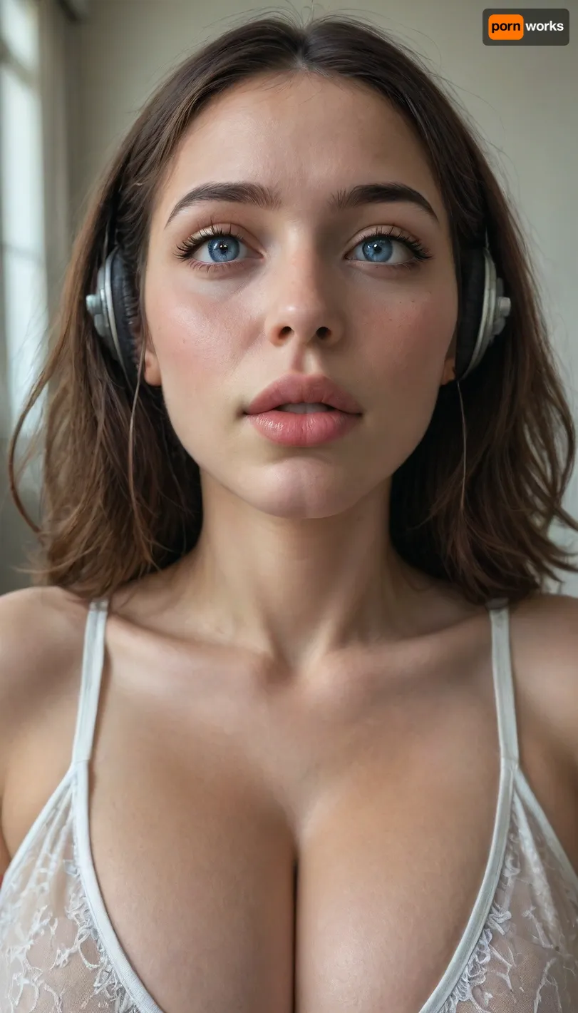 (18 Year old gamer girl:2), (headphones, twitch streamer, sitting in a gamer chair:1.5), (Irish, pale skin, freckles, freckles on face), (ring lighting, ringing lighting reflected in eyes), (Scandinavian and Irish features), (photorealistic, photo realistic, photorealism, photo realism:1.8), (4k, 8k, 8k resolution, best quality, ultra quality, highest quality, maximum quality, uncompressed, raw source photograph:1.2), (same color eyes, symmetric eyes, matching eyes, detailed eyes, detailed iris, detailed pupils, limbal ring around iris, perfectly round iris, perfectly round pupils:1.4), (detailed skin, high detailed skin, intricately detailed skin, perfectly detailed skin, high quality skin, highest quality skin, exquisitely textured skin), (intricate clothing, detailed clothing), (microblade eyebrows, perfectly manicured eyebrows), (flushed cheeks, flushed neck, blushing cheeks, blushing neck), (overfilled lips, juicy lips, filled lips, puffy lips, glossy lips, her thick wet lips are slightly parted, nervously biting lower lip, lip bite, lip biting), (casual makeup, subtle makeup, natural makeup), (narrow jaw, delicate jawline, pointed jaw and chin, heart shaped face, pixie face, fairy face, fae features, extremely feminine face, round face, chin, mouth, high cheekbones, sharp cheekbones, faint vellus hairs, cute tall tall tall dimpled cheeks), (massive hude boobs:1.3), (huge deep cleavage:1.5), (full body:1.5)