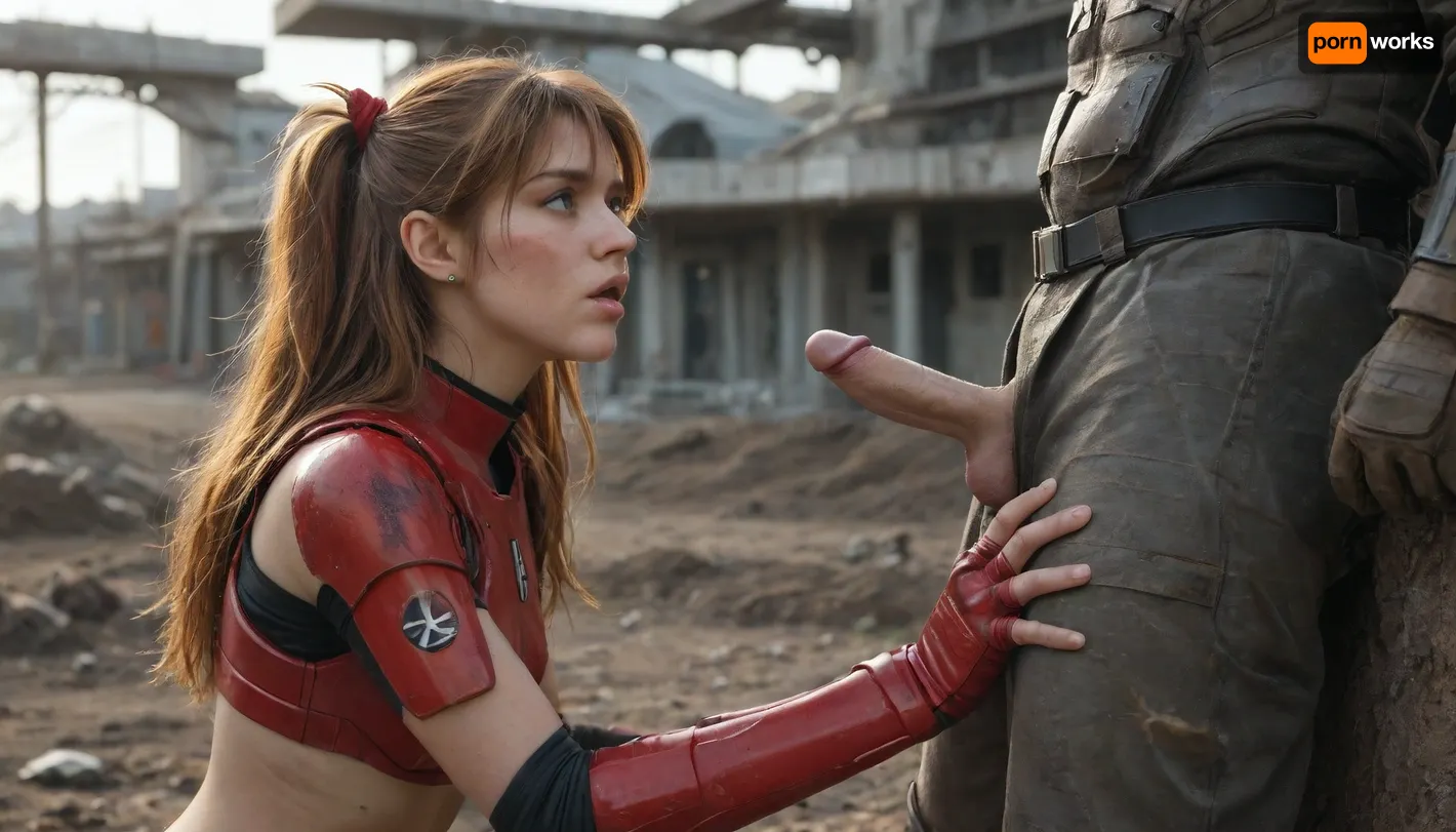 asuka, langley, long red flying hair, Star Trek uniform, armor, breastplates, (sexy midriff:1.2), heavy boots, dirty face, muddy face, muddy arms and legs, (scratches on face:1.2), being lost, inquisitive expression, interested look, blowjob, full mouth, boxer shorts, (small penis:.9), outdoor at industrial ruin, lost in battle zone, background is industrial ruin of futuristic city, view from the side, (focus on mough:1.1), (focus on face:1.2), crepuscular rays, ambient lighting asuka, langley, long red flying hair, Star Trek uniform, armor, breastplates, (sexy midriff:1.2), heavy boots, dirty face, muddy face, muddy arms and legs, (scratches on face:1.2), being lost, inquisitive expression, interested look, blowjob, full mouth, boxer shorts, (small penis:.9), outdoor at industrial ruin, lost in battle zone, background is industrial ruin of futuristic city, view from the side, (focus on mough:1.1), (focus on face:1.2), crepuscular rays, ambient lighting