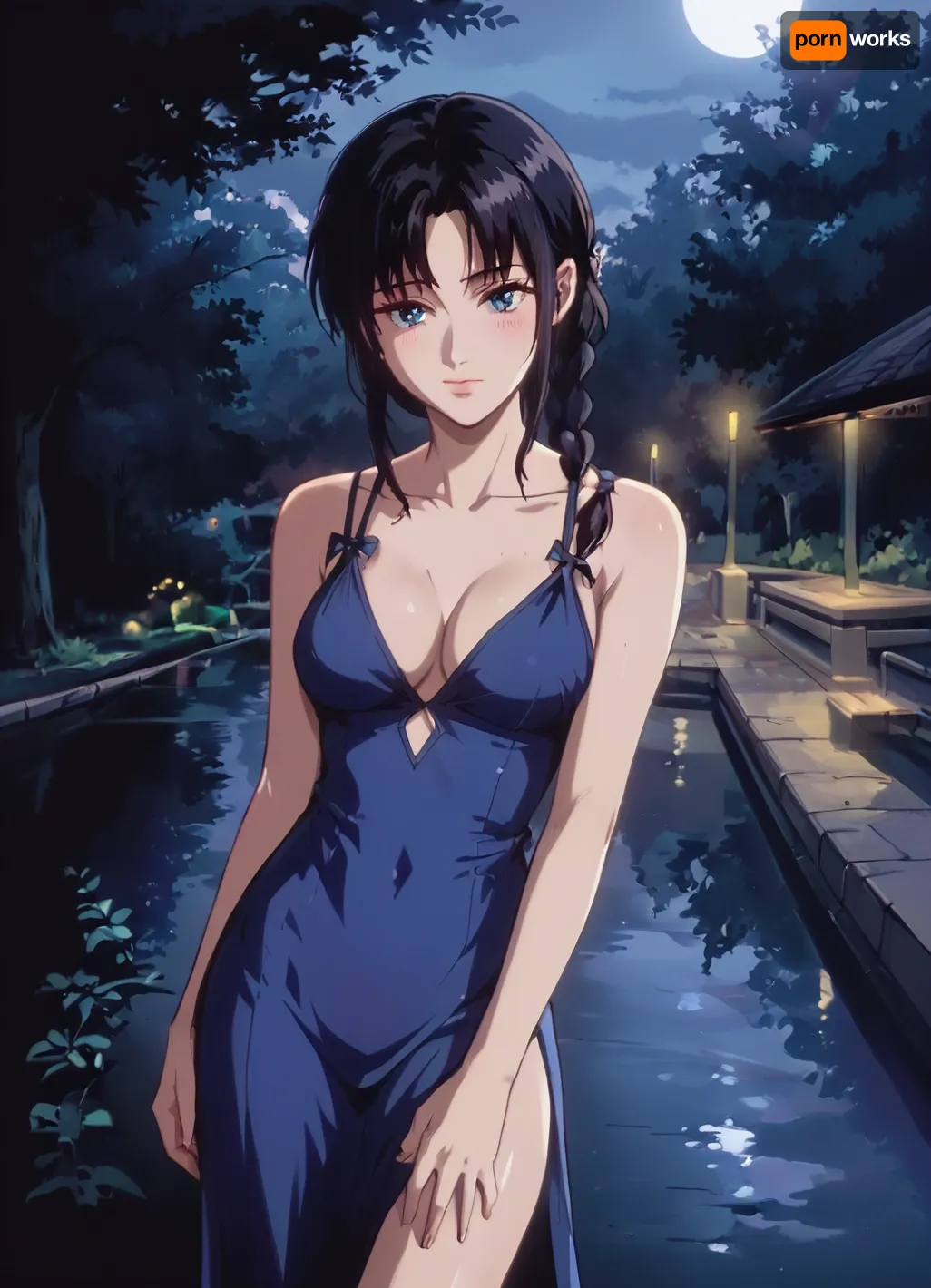 Black hair, braid, medium round breasts, cute, 18 years old, cute and sexy pose, naked, full hd, high quality, 4K, skinny, sexy shiny tight cobalt blue dress with slit, near lake in park, standing, grabbing bare thigh under slit, seductive face, moonlight, cleavage, night, <lora:NEOTOKIOXL_0.2_RC:1.4> Black hair, braid, medium round breasts, cute, 18 years old, cute and sexy pose, naked, full hd, high quality, 4K, skinny, sexy shiny tight cobalt blue dress with slit, near lake in park, standing, grabbing bare thigh under slit, seductive face, moonlight, cleavage, night, <lora:NEOTOKIOXL_0.2_RC:1.4>