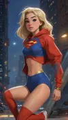 (masterpiece, best quality, absurdres), 1girl, solo, cowboy shot, happy emotion, cute smile, long platinum blonde hair, bright glowing green eyes, beautiful mature age 26 supermodel female, perfect anatomy, looking at viewer, hands on hips, glowing, (wearing a intricate sexy Supergirl design red blue gold elegant Indian Punjabi design saree and a deep neck blouse and that beautifully reveals her cleavage and navel visible, nipples slightly visible, thick, curvy inner thighs completely visible, legs spread open, saree slightly lifted above thighs, with a thin an long necklace is made of gold and has a long chain with black and gold beads. The beads are arranged in a repeating pattern, with the largest bead at the bottom and the smallest at the top. In the center of the necklace, there is a pendant with a design in the shape of a Superman Logo symbol, The pendant is attached to the chain with a gold clasp. The overall style of the jewelry is traditional and elegant, adorned with a striking thin golden chain around her hips. She has a small red bindi on her between her eyebrows and green colored glass bangles on her wrist, outfit:1.5), muscular body, athletic body, voluptuous body, skinny body, thin body, hourglass body, thick body, washboard abs, outdoors, hovering above a Futuristic Cyberpunk Metropolis City The Daily Planet Building below, night, (no gravity floating pose:1), highlydetailedbody, realisticface, highlydetailedhair, insanelydetailed, 8K.highdetailedskin, highresolution, perfectfingers, (j_cartoon:1.5), Drawing., DCEU, Supergirl, rha3, woman, targaryan, <lora:rhaenyra young - rha3 woman sdxl:1>, <lora:Supergirl:.5>, <lora:samdoesarts1.1-000030:.4>, <lora:J_cartoon:.3>, <lora:Animated_Concept:.4>