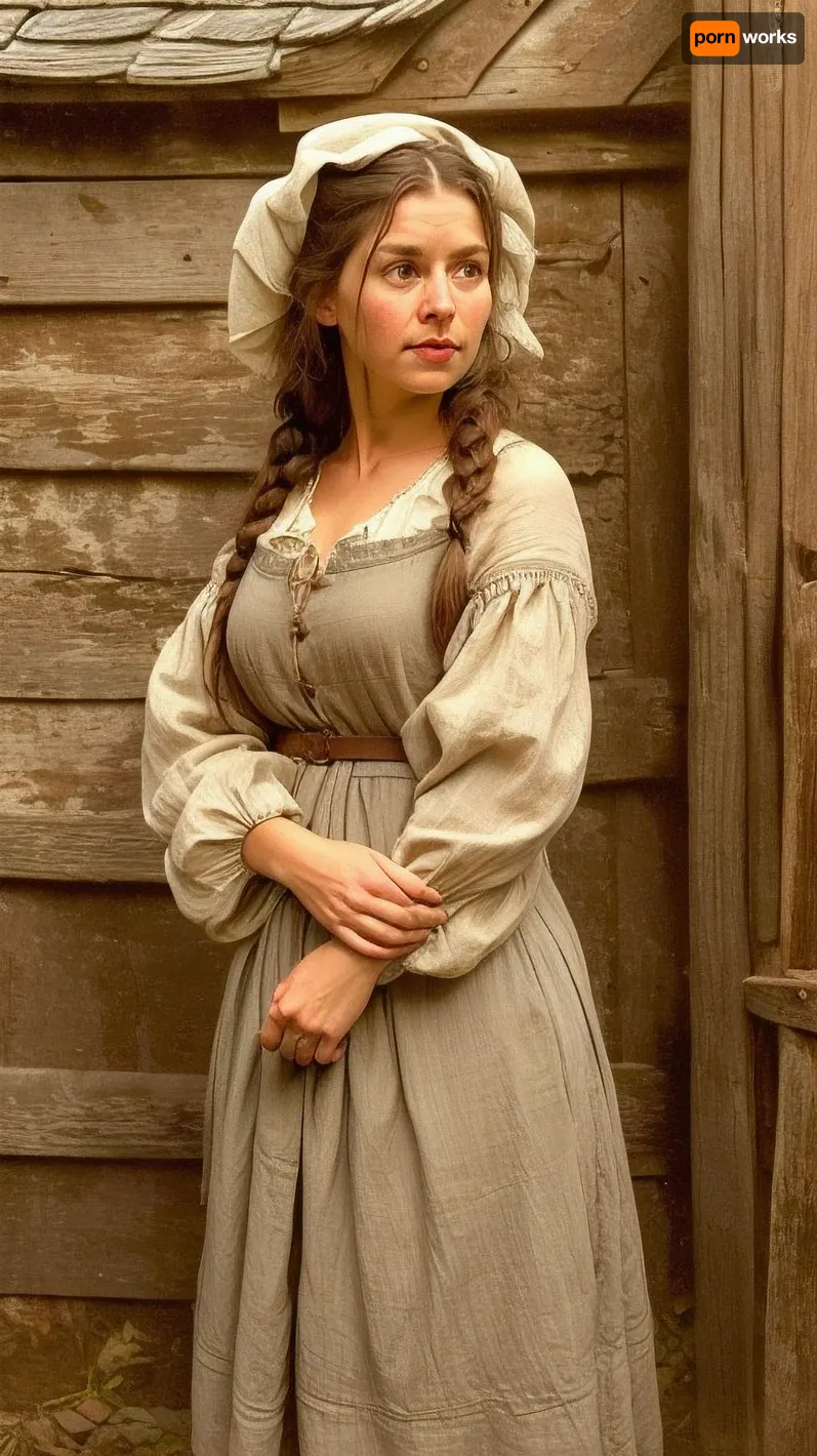 A beautiful curvy peasant woman, 40 years old, of Slavic ethnicity, stands near a dilapidated wooden barn. Her face holds a calm, yet weary expression. Her dark brown eyes, slightly downturned. She wears a linen chemise, antique in style, reaching her ankles. The garment is unbelted, with long, wide sleeves that fall loosely to her wrists, unfastened. A simple neckline is tied with thin, dark linen tapes. The texture of the linen is coarse, slightly rumpled. Her hands, calloused and strong, hang loosely at her sides, her posture stooped yet dignified. The woman's dark hair is pulled back in a simple braid. The barn, constructed from aged, grey wood, shows signs of decay—warped planks. The background is a muted palette of browns, greens, and greys, reflecting a late afternoon light. The overall style evokes a realistic portrayal, reminiscent of Russian realism, with a focus on capturing the raw honesty and dignity of rural life. The composition is a three-quarter view, slightly low angle, emphasizing the woman's stature against the imposing backdrop of the barn. The lighting is natural, diffused sunlight casting soft shadows, enhancing the textures and details of both the woman and her surroundings., vntgdrwngCE, style, fanslu, <lora:FantasySlums-10:.8> A beautiful curvy peasant woman, 40 years old, of Slavic ethnicity, stands near a dilapidated wooden barn. Her face holds a calm, yet weary expression. Her dark brown eyes, slightly downturned. She wears a linen chemise, antique in style, reaching her ankles. The garment is unbelted, with long, wide sleeves that fall loosely to her wrists, unfastened. A simple neckline is tied with thin, dark linen tapes. The texture of the linen is coarse, slightly rumpled. Her hands, calloused and strong, hang loosely at her sides, her posture stooped yet dignified. The woman's dark hair is pulled back in a simple braid. The barn, constructed from aged, grey wood, shows signs of decay—warped planks. The background is a muted palette of browns, greens, and greys, reflecting a late afternoon light. The overall style evokes a realistic portrayal, reminiscent of Russian realism, with a focus on capturing the raw honesty and dignity of rural life. The composition is a three-quarter view, slightly low angle, emphasizing the woman's stature against the imposing backdrop of the barn. The lighting is natural, diffused sunlight casting soft shadows, enhancing the textures and details of both the woman and her surroundings., vntgdrwngCE, style, fanslu, <lora:FantasySlums-10:.8>