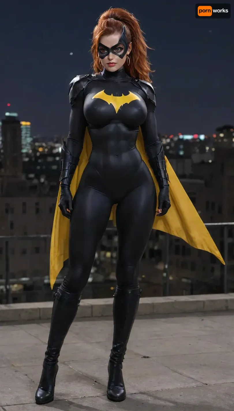 red hair, high ponytail, batgirl mask, masked face, sexy, big tits, big ass, full batman armor, skinny, slim, athletic, muscles, strong, fit, muscular, tight fitting batgirl armor, bimbo, huge tits, huge ass, standing on a rooftop, night, cityscape in background, portrait shot, front view, full body in picture, muscle_bimbo, extra busty, huge boobs, huge butt, big boobs, superhero pose, large, breasts, boobs, tits, bottomheavy, big, ass, huge, gigantic, thick, thighs, massive, massive tits, huge giant round tits, batman armor, batgirl armor, Batman, Beyond, detailxl, <lora:Muscle_Bimbo_SDXL:.8>, <lora:bombshell_v2:.8>, <lora:bottomheavy_v1_sdxl_tags:.8>, <lora:Batman Beyond:.8>