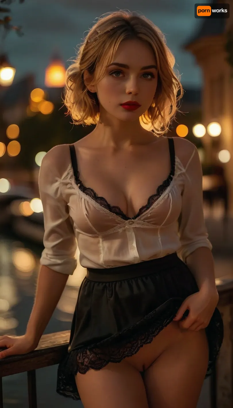 near Seine at Moonlight, in Paris, before Louvre, warm lightning, beret, woman parisian, very beautiful 25 year, blond, short hair, red lipstick, mascara, back view, perfect make-up, lying on bench, lifting skirt, elegant skirt, unbuttoned white shirt, showing embroidered black bra, (show nipples), fingering, ardor, black lace panties, suspender belt, wearing elegant dress, show pussy, perfect face, caressing pussy, upskirt, showing panties, hairy pussy, Undressing, undressing with haste, show butt, sexuality, skirtlift, <lora:skirtlift_xl:.5>, <lora:MJ52:2>, <lora:style_lora_realis:2>, realistic, real, face, hyper, realsitic, influencer, insta, beautiful, sexy, pretty, <lora:Realistic_Insta_InfluencerV1.0:.8>