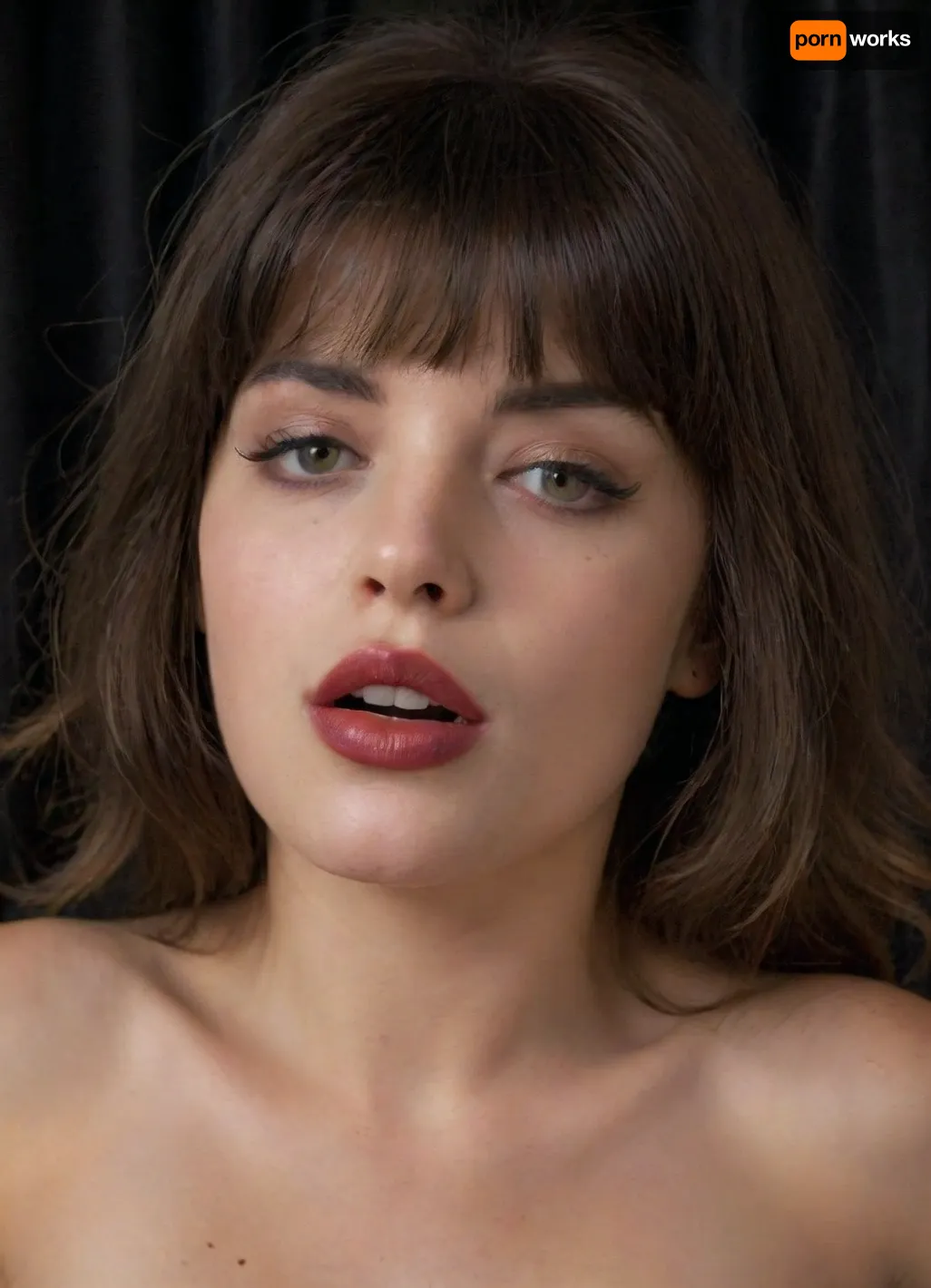 i love pounding drunk, breathtaking, tanned, athletic, petite, wild white college cunts, shiny skin, dark red lips, black curtain bangs haircut, black haired, 1/2 wiev, <lora:orgasmface_SDXL:1>, <lora:SDXL_BetterFaces-LoRA_v1:1>
