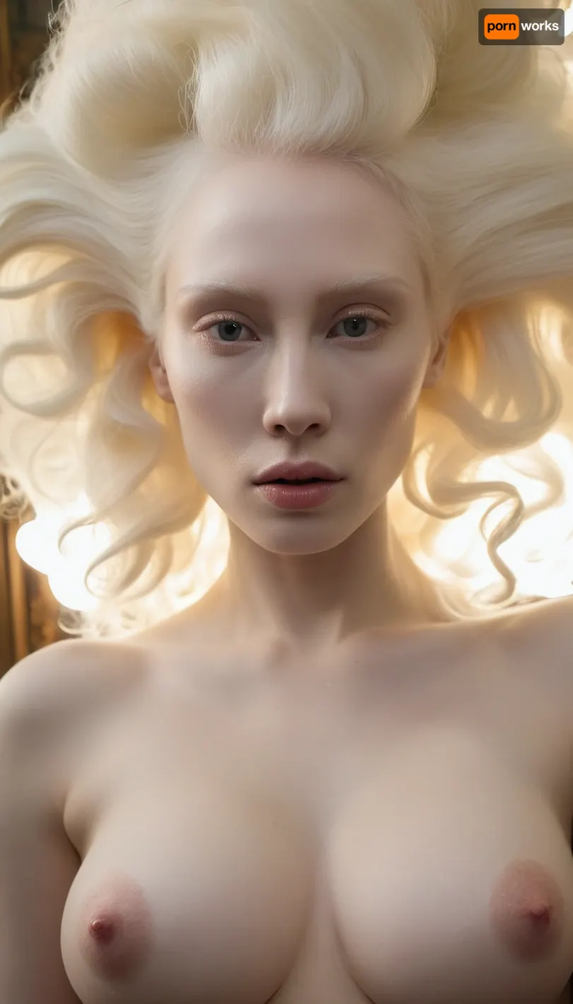 Zip Realism, (style of Kim Keever:1.8), (avant-garde surreal esthetic, eerie, unnerving, otherworldly, ephemeral, eldritch, elaborate scene, layered composition:1.4), (silver-blonde hair, voluminous hair, hair glow:1.2), (pale skin, flawless porcelain skin, albino, light eyebrows:1.6), (lithe, slender body, chiselled cheekbones, delicate face), (pale breasts, huge soft breasts, cleavage, topless, artistic nudity, study of feminine form:1.2), (focus on eyes, large eyes, dispassionate gaze, emotionless eyes, face closeup), (analog lens, low angle view) Zip Realism, (style of Kim Keever:1.8), (avant-garde surreal esthetic, eerie, unnerving, otherworldly, ephemeral, eldritch, elaborate scene, layered composition:1.4), (silver-blonde hair, voluminous hair, hair glow:1.2), (pale skin, flawless porcelain skin, albino, light eyebrows:1.6), (lithe, slender body, chiselled cheekbones, delicate face), (pale breasts, huge soft breasts, cleavage, topless, artistic nudity, study of feminine form:1.2), (focus on eyes, large eyes, dispassionate gaze, emotionless eyes, face closeup), (analog lens, low angle view)