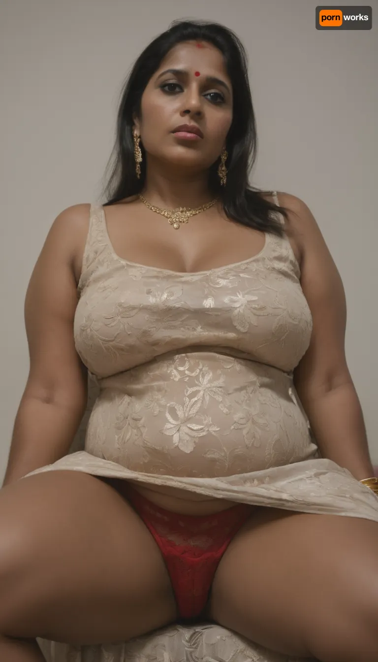 candid, voyeur, (Realistic:1.4), beige maxi Dress, very long black hair, heavy indian jewelry, bangles, sitting back, front view, low angle, ((closeup)), subtle upskirt, (traditional Mature south indian mom:1.4), (dark brown skin:.9), sitting in a luxury hotel lobby, (lace red panties), heavy eye liner, looking away unaware, (head turned looking off into the distance:1.5), chunky hips, pudgy belly, fat and ugly, <lora:set4:.8>, <lora:EnvyZoomSliderXL01:.8>
