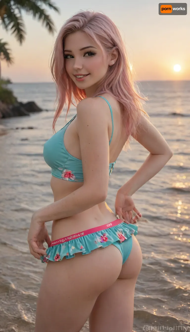 b3ll3, 1girl, long, pink hair, eyes, breasts, belledlphn, lewd teasing smile, small perky pointed boobs, small bubble butt, five fingers, perfect hands, perfect fingers, on a beach during sunset, (fashionable swimwear with swim skirt), (naughtily teasing the viewer:2), <lora:Belle_Delphine:2>, <lora:BelleDelphine(belledlphn):2> b3ll3, 1girl, long, pink hair, eyes, breasts, belledlphn, lewd teasing smile, small perky pointed boobs, small bubble butt, five fingers, perfect hands, perfect fingers, on a beach during sunset, (fashionable swimwear with swim skirt), (naughtily teasing the viewer:2), <lora:Belle_Delphine:2>, <lora:BelleDelphine(belledlphn):2>