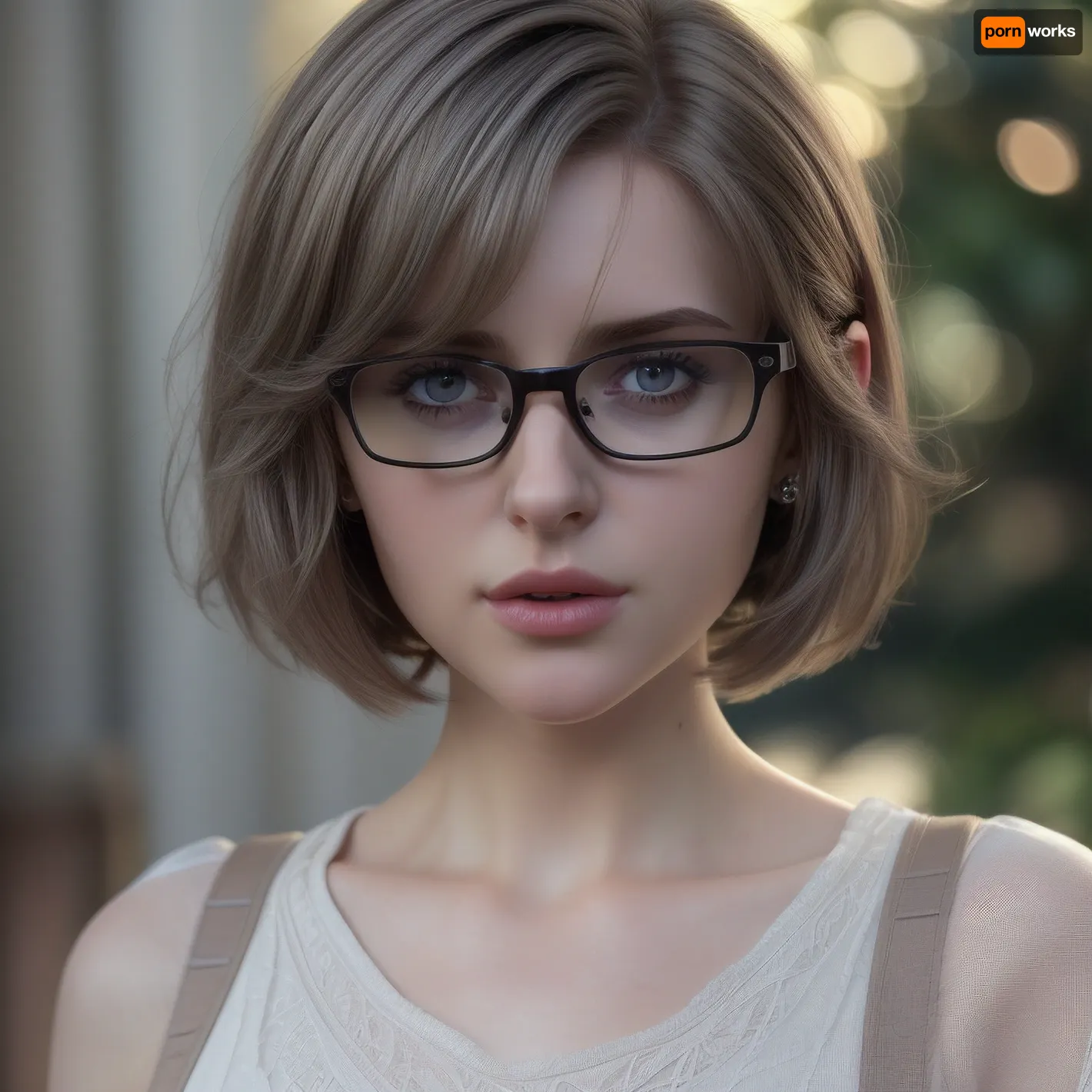 1girl Europian girl, looking at viewer, Full body view, 3D, realistic, a small delicate nose, soft rounded facial features, (but not chubby), large breasts, (tight cropped top), short gray skirt, brown natural hair, Warm eyes behind delicate glasses, messy shaggy Bob haircut, erect nipples visible through clothing, masterpiece, best quality, 8k, detailed skin texture, detailed cloth texture, beautiful detailed face, intricate details, ultra detailed, rim lighting, side lighting, cinematic light, ultra high res, 8k uhd, film grain, best shadow, delicate, RAW, <lora:hipoly_3dcg_v7-epoch-000012:.5> 1girl Europian girl, looking at viewer, Full body view, 3D, realistic, a small delicate nose, soft rounded facial features, (but not chubby), large breasts, (tight cropped top), short gray skirt, brown natural hair, Warm eyes behind delicate glasses, messy shaggy Bob haircut, erect nipples visible through clothing, masterpiece, best quality, 8k, detailed skin texture, detailed cloth texture, beautiful detailed face, intricate details, ultra detailed, rim lighting, side lighting, cinematic light, ultra high res, 8k uhd, film grain, best shadow, delicate, RAW, <lora:hipoly_3dcg_v7-epoch-000012:.5>