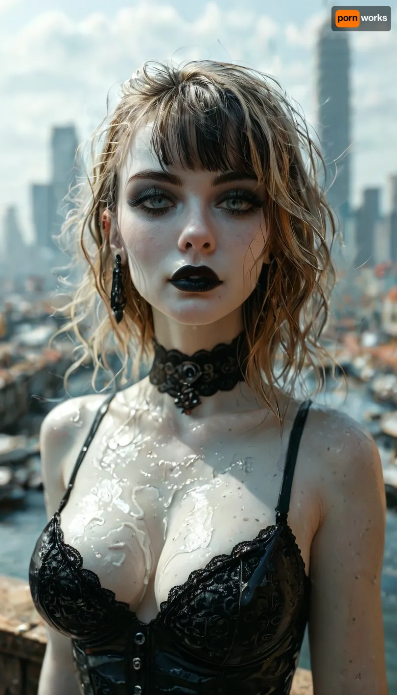 gothic, goth, pale skin, dark black eyes, blond hair, bangs hair, black eyeliner, (black lipstick), white skin, perfect eyes, small eyes, detailed eyes, small nose, good anatomy, ultra detailed, high resolution, wonderful scenery, aesthetics, background, fake breasts, slut face, whore, (posing:1), sexy posing, (illustration:1), (hand drawn:1), (anime:1), <lora:MJ52:1>, <lora:EnvyZoomSliderXL01:-2>, <lora:detailed_notrigger:.5>