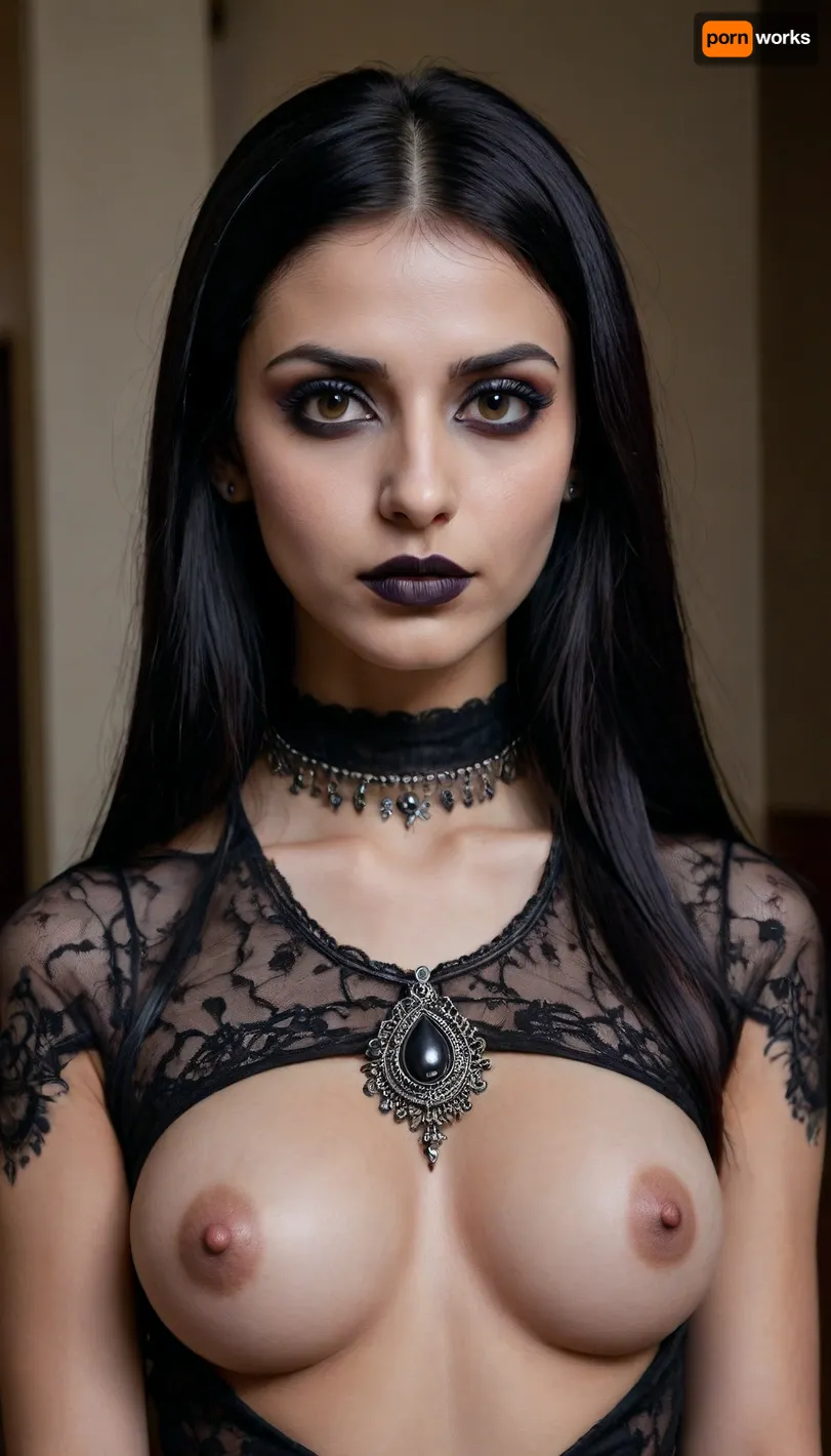 skinny white indian girl with dark straight long black hair without bangs, goth, punk rock style, she has extreme dark hazel eyes, wearing lots of black eye makeup with sharp black points at the corner of her eyes, dark lipstick, breasts, cutout, clothing, nipples, <lora:2BoutOvalSDXL2-000002:.5> skinny white indian girl with dark straight long black hair without bangs, goth, punk rock style, she has extreme dark hazel eyes, wearing lots of black eye makeup with sharp black points at the corner of her eyes, dark lipstick, breasts, cutout, clothing, nipples, <lora:2BoutOvalSDXL2-000002:.5>