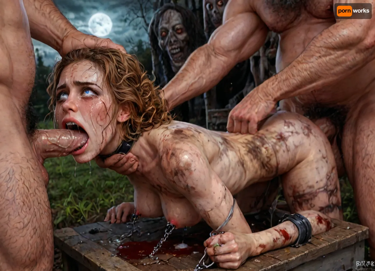 UHD, 8k wallpaper, (maximum quality:1.5), (ultra high resolution:1.7), (masterpiece:1.5), (full body view), award winning photo, (Extreme:1.45), (insanely detailed:1.24), (realism:1.24), (realistic:1.7), (hdr:1.4), hyper-detailed realistic body, hyper-detailed realistic face, (warm ambient light:.5), (dark shadows:1.4), (inside torture chamber), Princess Merida disney princess very skinny body, 18 years old, gigantic penis, gigantic cock, interracial, (anal), (vaginal), orgasm, ripped outfit, (gangbang), (triple_penetration), (full_blush), colors, (nipples), (medium_breasts), ruined black makeup, runny makeup, (big brown eyes), eyelashes, exhausted ecstatic expression, open mouth, painful, starring into the camera, ((Hyper realistic)), (ultra HD image), 8k, super high quality, super high resolution, extremely detailed, perfect face, perfect eyes, ((crying alot:1.65)), extremely shy, 1 girl, 8 old men, ((5 dirty old fat men gangrape girl:1.5)), ((view from the side)), ((brutal sex:1.3)), ((extremely rough pounding)), ((forceful)), (in a bloody field after a battle, white full moon in the sky:1.4), (man is choking her from behind:1.6), ((hogtied, bound with large chains, tied to a torture table:1.18)), ((((12 giant african muscular men:1.4)), (opening wide her little mouth:1.5), (interracial sex), ((anal fuck 1.5)), (big white cocks, muscular white old men gangbang, 6 large muscular old men, gargantuan old men cocks, anal sex expansion, large hyper muscular old men men, old men group sex gangbang, (old men gangbang sex), swollen white veiny cocks), (double anal penetration), hardcore double penetration, many men filming her with cellphones laughing, anal sex expansion, large hyper muscular fat old men, (double anal sex), (double anal penetration:1.4), proper physics, muscular white old men double anal gangbang)), (forceful penetrations), extremely graphic, shocked expression, beautiful hands, massive cum in ass, (eyes wide open in horror:1.72), (wide mouth spreader:1.8), (pleading expression:1.56), (terrified:1.48), (crying:1.48), (fear and panic:1.56), (pulled nipple clamps:1.4), (anal spit roast:1.12), (large massive cock in mouth:1.12), deep anal penetration, (very high view:1.12), (dynamic pose:1.12), (dynamic angle), (random angle), (random pose), (dynamic view), (random view), (detail Hermione Granger:1.32), (detail Hermione Granger face:1.16), <lora:LCMTurboMix_Euler_A_fix:2>, <lora:detailed_notrigger:2>, <lora:photorealistic_portrait_notrigger:2>, <lora:JuggerCineXL2:2>, <lora:CinematicStyle_v1:2>