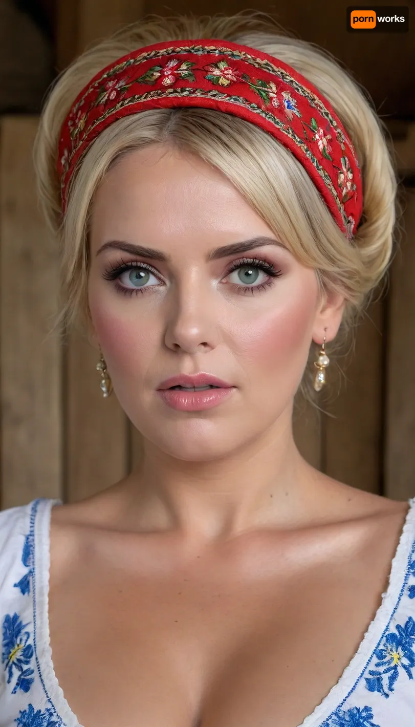 (4K UHD ultra-detailed RAW photo), high detailed, 8k, (photorealistic:1.7), 45 yo peasant scared woman in hayloft, ((milf:1.4)), (wearing Ukrainian national headband, Embroidery), ((voluminous blonde updo bangs haircut)), (nude), ((full body view)), ((makeup:1.5)), plump, skindentation, chubby, bbw, venus, body, big, breasts, ass, <lora:Chubby BBW - XL:.5> (4K UHD ultra-detailed RAW photo), high detailed, 8k, (photorealistic:1.7), 45 yo peasant scared woman in hayloft, ((milf:1.4)), (wearing Ukrainian national headband, Embroidery), ((voluminous blonde updo bangs haircut)), (nude), ((full body view)), ((makeup:1.5)), plump, skindentation, chubby, bbw, venus, body, big, breasts, ass, <lora:Chubby BBW - XL:.5>