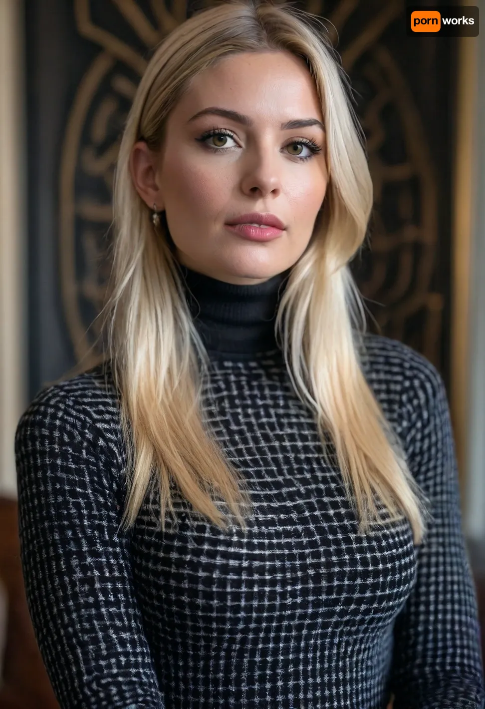 1 swiss 30yo woman, rapper, film charakter Valmira, (she wears a tight black and silver maze pattern cashmere high neck shirt and jeans:1.4), is indoors in a luxury apartment, (longest dyed blonde straight hair, middle parting with dark hairline:1.2), grey eyes, full lips, long eyelashes, pointed nose and chin, medium natural tits, rings on the fingers, long fingernails, big earrings, <lora:681678_training_data:.5>, <lora:SDXLHighDetail_v6-000005:.5>, <lora:style_lora_realis:.5> 1 swiss 30yo woman, rapper, film charakter Valmira, (she wears a tight black and silver maze pattern cashmere high neck shirt and jeans:1.4), is indoors in a luxury apartment, (longest dyed blonde straight hair, middle parting with dark hairline:1.2), grey eyes, full lips, long eyelashes, pointed nose and chin, medium natural tits, rings on the fingers, long fingernails, big earrings, <lora:681678_training_data:.5>, <lora:SDXLHighDetail_v6-000005:.5>, <lora:style_lora_realis:.5>