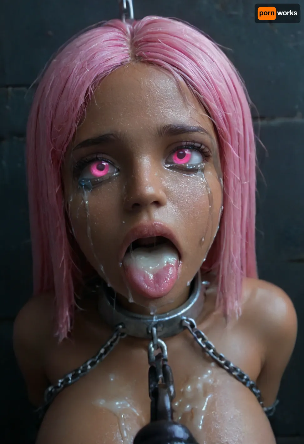 18 year old PETITE EBONY BIMBO CUTIE WITH HUGE ROUND FAKE BREASTS IS MIND CONTROLLED IN A DARK ALLEY, BROWN SKIN BIMBO IS HYPNOTIZED TO BE A CUM SLAVE FOR VIEWER'S hyper gigantic MASSIVE BLACK HORSEcock, SHE'S HYPNOTIZED BY VIEWER TO BE EXTREMELY DESPERATE AND TERRIFIED OF HIS gigantic thick BLACK HORSEcock, UHD 8K, extreme realism, maximum detail, PERFECT WET BROWN SKIN, RANDOM VIEW ANGLE, RANDOM POSE, HYPNOSIS, BDSM, SHOCKED EXPRESSION, (INTENSE SAD CRYING:1.9), BUKKAKE, (MESSY long MULTICOLOR hair, RANDOM HAIR STYLE), YOUNG EBONY HOTTIE BIMBO WITH ENORMOUS SILICONE TITS IS OBSESSED WITH VIEWER'S ENORMOUS BLACK HORSECOCK, she is DISGUSTED WHILE kissing the tip of HIS MASSIVE BLACK HORSEcock and licking the cum, SHE'S DISGUSTED BY HUGE BLACK HORSEcock, SUPER EXCITED eyes GLOWING WITH INTENSE SHOCK, EYES WIDE OPEN IN SHOCK, (BRIGHT GLOWING MINDLESS PINK eyes:2), she is HYPNOTIZED TO WORSHIP VIEWER'S MASSIVE BLACK HORSECOCK, EXTREME BUKKAKE BY HUGE BLACK HORSECOCKS, EXCITED SHOCKED extreme orgasm face, (EXTREME AHEGAO FACE:1.8), lots of thick runny cum on her EBONY BIMBO face and lips and chin and forehead, (tinkerbell99, aged 20), SUPER FIT BLACK BIMBO BODY, WEARING FISHNET CATSUIT, (SHE'S WEARING A SLAVE COLLAR RESTRAINED BY CHAINS:1.3), (VERY BIG ROUND FAKE BIMBO BOOBS), EXTREME HYPER BUKKAKE, perfect composition of lights and shadows, (After massive bukkake cum), dynamic, the brightest image, clear focus, depth of field, 32k, 30 mm lens, 1/250 s, f/2.8, ISO 300, excessive thick runny cum on face, lots of cum on breasts, lots of cum on hair, cum in mouth, close-up, cowboy, shot, high, angle, skinny, body, igbaddie, tongue, out, ahegao, drool, melanin, <lora:JustCum:2>, <lora:cum_in_eye_deepmind:2>, <lora:igbaddie-XL:2>, <lora:ahegao_mr_chrisma:2>, <lora:melanin-XL:2>