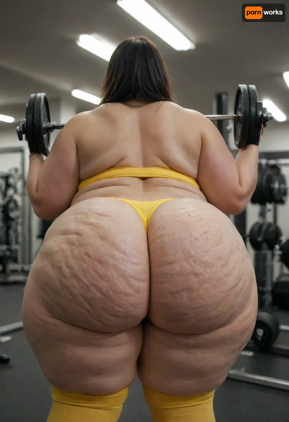 ultra realistic, Canon EOS pro shot, Gigantic wide hips, (chubby, obese, square body, fat, cellulite:1.4), (plump, obese, ssbbw, pear shaped body:1), ultra realistic photography, at the gym, pastel yellow leggings, smiling, happy, wet body, sweating, too fat to carry weights, thick thighs, massive fat ass, humping, ultra realistic background, (long straight black hair:1.4), (((maximum details))), action shot, gigantic ass, chunky, crazed, <lora:Image Enhancer XL Extreme v1:.6>, ac3fus1on, artstyle, <lora:ac3fus1on:.8>, intricate details, lights and shadows effects, <lora:Adjust_SDXL_v3.0:2> ultra realistic, Canon EOS pro shot, Gigantic wide hips, (chubby, obese, square body, fat, cellulite:1.4), (plump, obese, ssbbw, pear shaped body:1), ultra realistic photography, at the gym, pastel yellow leggings, smiling, happy, wet body, sweating, too fat to carry weights, thick thighs, massive fat ass, humping, ultra realistic background, (long straight black hair:1.4), (((maximum details))), action shot, gigantic ass, chunky, crazed, <lora:Image Enhancer XL Extreme v1:.6>, ac3fus1on, artstyle, <lora:ac3fus1on:.8>, intricate details, lights and shadows effects, <lora:Adjust_SDXL_v3.0:2>