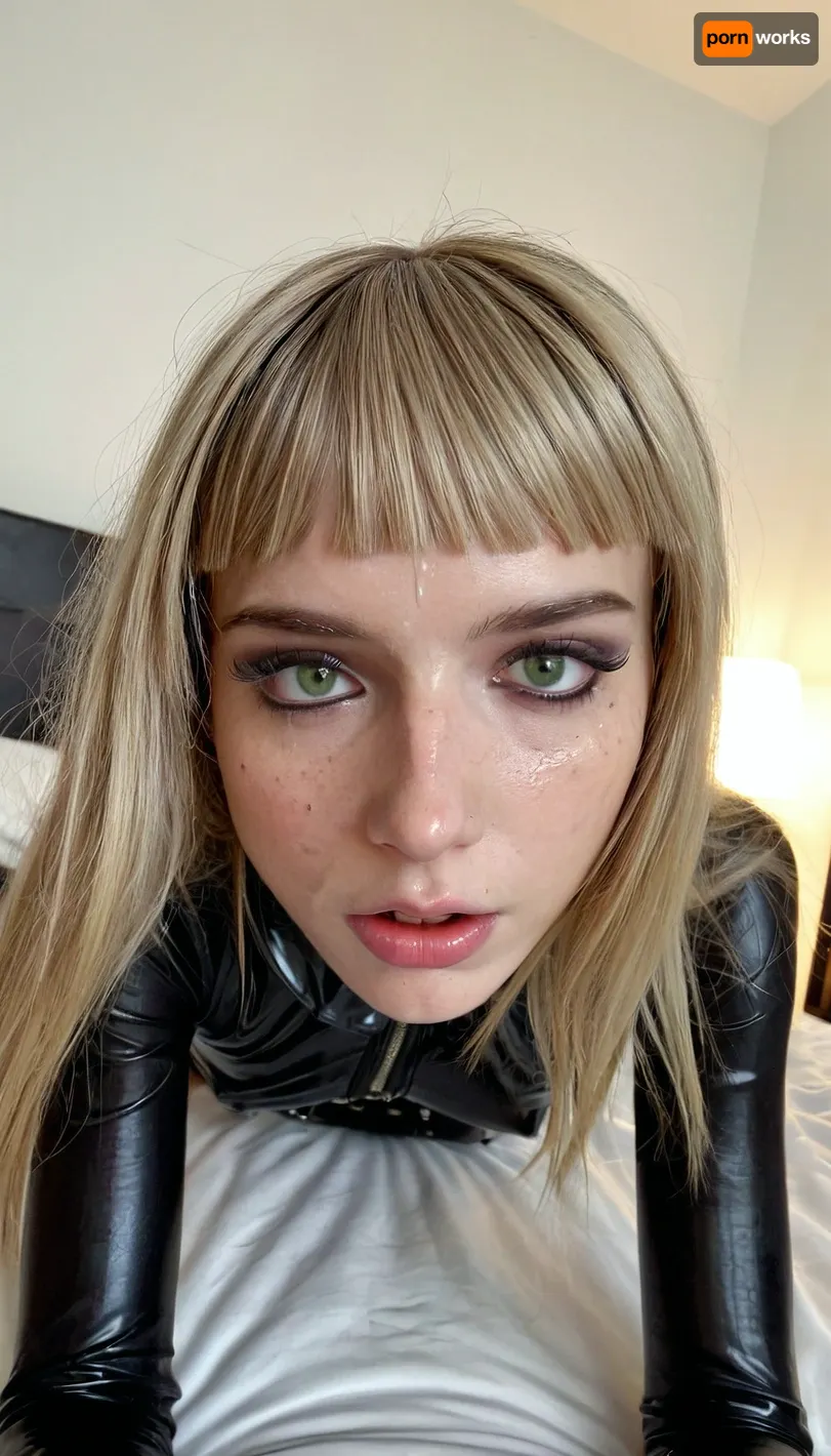 Photorealistic erotic photo, professional erotic artistic photography, highest-resolution, 32k uhd, hdr, 120mm film photo, breathtaking gorgeous goth anorexic egirl, 18 years old, astonishing beautiful skinny face, black lipstick, heavy eyeliner and eye makeup, extremely thin arched eyebrows, dark-green big eyes, (luxurious Baroque goth bedroom:1), (stunning beautiful punk mistress:1), wearing in a short tight black goth latex corset, latex tight shorts, (provocative all fours on bed:1), (long dark-blonde hair with bangs:1), (skinny anorexic body:1.3), (sadistic attitude:1), photorealistic skin details, freckles, pimples, dimples, acne, (random creative frontal view and angle:1.5), chiaroscuro play of light and shadows, ac_neg1, 4ng3l, face, <lora:SDXL_BetterFaces-LoRA_v1:.8>