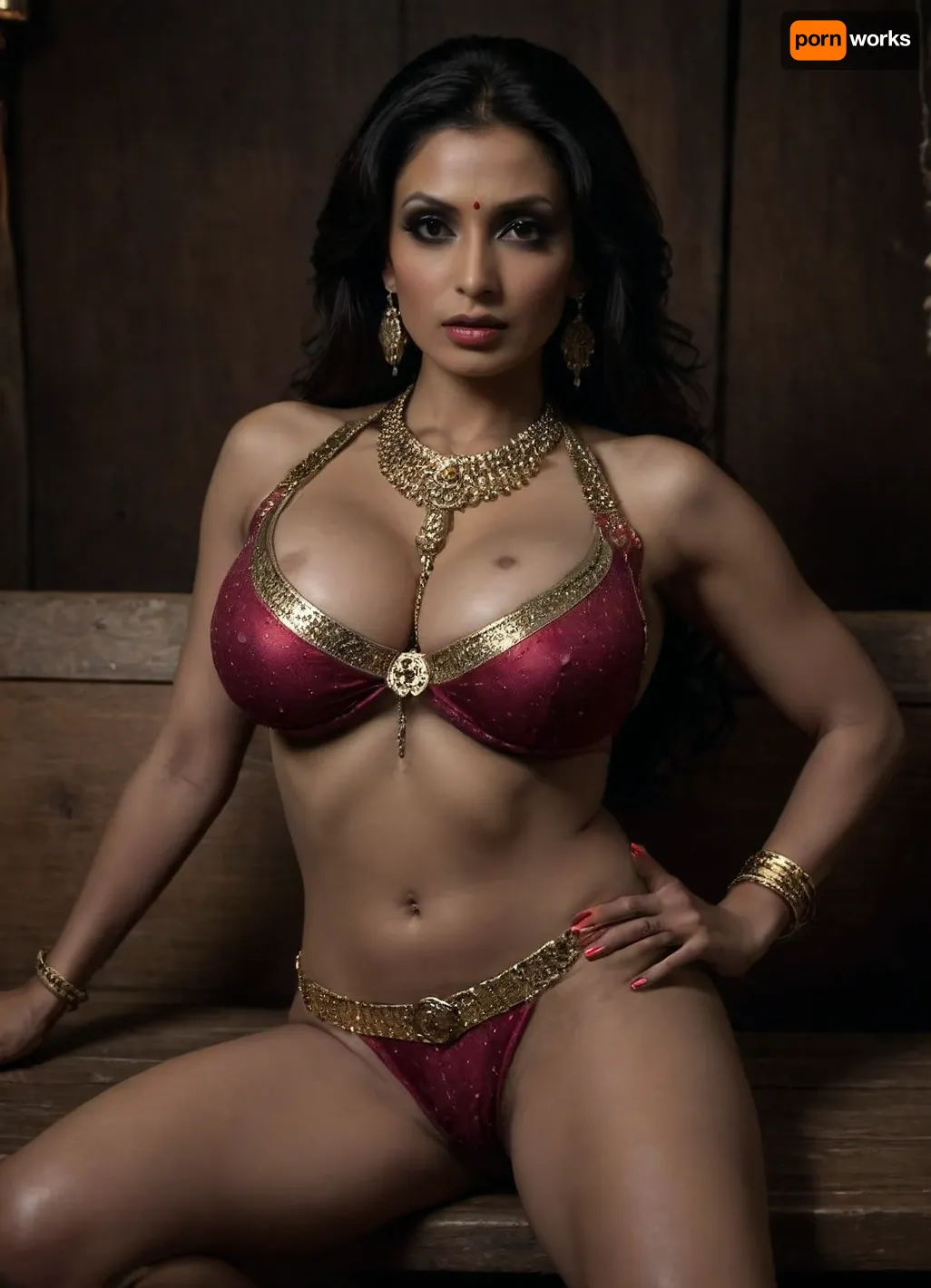 (flora saini:1.3), (horny busty Indian bride in traditional bridal saree and jewellery, 40 year old, cowgirl vaginal sex, lying back on bench, huge rounded boobs, glamorous, luxury, diva, topless:1.3), intricate colorful silk bridal nightgown robe, (sharp nose, cleft chin, busty lips, nipple clamps, chains, chain halter top, hazel eyes, huge rounded boobs, busty, topless, exposed:1.3), (plunging mangalsutra, bangles, bindi, sindoor, intricate hair, screaming and crying, view from below:1.3), wood cabin porch, night, 4k, ultra realistic, large, big, boobs, huge, tits, a, with, big breasts, in, Luxury, Bedroom, ral-chnz, ChainHalter, <lora:bombshell_v2:.4>, <lora:bboobs-000005:2>, <lora:dark:2>, <lora:ral-chnz-sdxl:2>, <lora:ChainHalterXL:2>