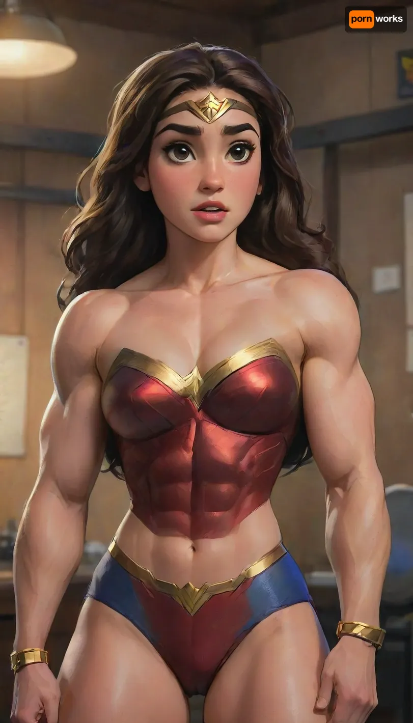 Wonder Woman is Rachel Pizzolato, (Wonder Woman:1.3), dressed in wonder woman inspired intricate designer sensual alluring cropped hoodie with track shorts and thigh high wool socks clothes attached to her athletic hourglass body, big, tanga sensual, realistic portrait, captivating facial expression, confident stance, penetrating eyes, radiant skin, effects exquisite details, high resolution jockstrap, studio photograph, dramatic lighting, blurry background, warm tones, bold color palette, kinematic effect, Arte conceptual., sharp focus, depth of field, 8k photo, HDR, professional lighting, taken with Canon EOS R5, 75mm lens, natural beauty, highlydetailedbody, realisticface, highlydetailedhair, insanelydetailed, 8K.highdetailedskin, highresolution, perfectfingers, (j_cartoon:1.5), Drawing, ., <lora:pizzolato_sdxl:1>, uberfit, muscular, athletic, <lora:uberfit_lora_sdxl:.7>, <lora:samdoesarts1.1-000030:.4>, <lora:J_cartoon:.3>, <lora:Animated_Concept:.4>