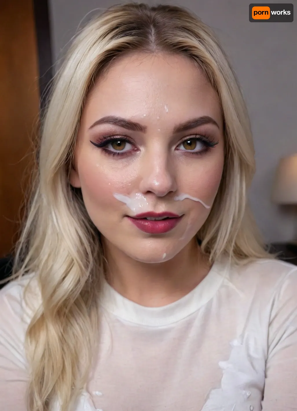 lightly smiling woman with a warm expression with thick white cum on her face, golden eyes, (bold winged eyeliner), elegant ombre hair, (indirect lighting), eye contact, 8k, mouth open, very dark lipstick, facial, white cum on face, covered in thick white cum, cowgirl outfit, <lora:Facials:.2> lightly smiling woman with a warm expression with thick white cum on her face, golden eyes, (bold winged eyeliner), elegant ombre hair, (indirect lighting), eye contact, 8k, mouth open, very dark lipstick, facial, white cum on face, covered in thick white cum, cowgirl outfit, <lora:Facials:.2>