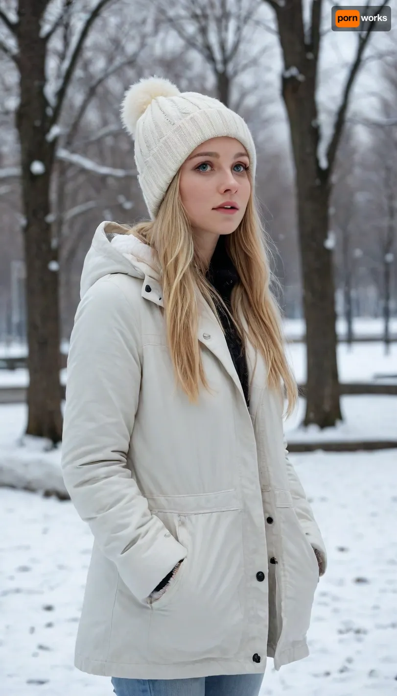 1girl, small breasts, blonde hair, low-tied long hair, blue eyes, looking away, worried, hands in pockets, white parka, white jeans, pom pom beanie, outdoors, winter, snow, park, city, snowing, (masterpiece, best quality, absurdres, highres, newest, very awa) 1girl, small breasts, blonde hair, low-tied long hair, blue eyes, looking away, worried, hands in pockets, white parka, white jeans, pom pom beanie, outdoors, winter, snow, park, city, snowing, (masterpiece, best quality, absurdres, highres, newest, very awa)