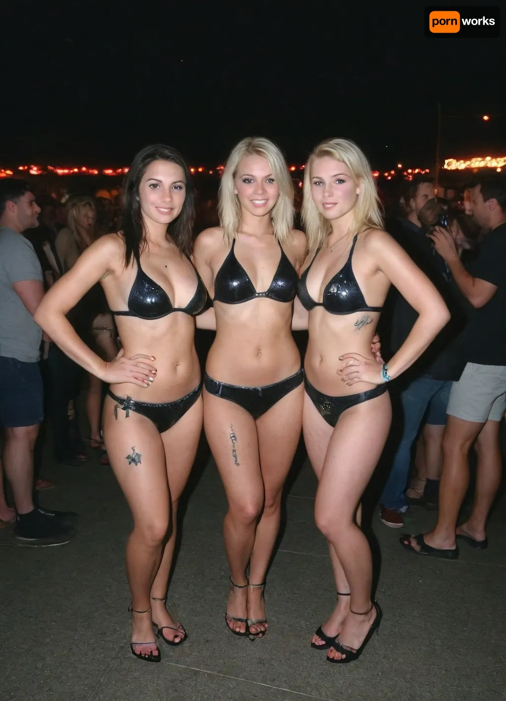 girl are 4' tall, petite, tiny, size 10 waist, slim thick, Leica M10, dslr, Wide-Angle Lens 35mm, ((extremely wide shot:1.8)), (((Wide-Angle perspective:1.8))), (((interesting angle))), (full-length image:1.9), ((rear side view:1.8)), (nighttime), (no ambient light), (single harsh flash from the camera), (overexposed flash highlights on subject), (flat lighting due to direct flash), (cool white balance:1.3), (cyan-tinted shadows from digital camera sensor), (fluorescent-like artificial lighting tint), (fluorescent lighting tint), (artificial lighting with cyan hue), (realistic dark environment with high flash contrast), (cool indoor lighting), (direct flash photography), (overexposed flash), (strong shadows), (sharp shadows), (lights off), (background remains visible due to flash, but lacks blur or depth separation), (sharp background), (background in focus), (no background blur), (clear background details), (wet surfaces reflecting small highlights), (swamp), (realistic environment), (scene "Myspace"), (2000s), (90s digital aesthetic), (Scene-Queen), (Myspace), (picture), (bad quality), (90s style), (80s), (1990s), (analogic), (analogic style), (low quality photo), (old camera), (flash photo), (old digital camera), (cellphone photography), (Polaroid flash camera), (raw), (jpeg artifacts), (film grain), (light leak), (low res), (low quality), (unfiltered), (low contrast), (low contrast:2), (noise in all darker areas), (noise in dark areas), (shiny reflections on surfaces), (gritty), (optional), polaroid, film, photography, longnightout, ((big breast)), This photograph captures three women posing together at night, likely at a party or club. The woman on the left has long, wavy blonde hair, tan skin, and wears a revealing, dark brown bikini. The woman in the center has long, straight platinum blonde hair, pale skin, and is wearing a red micro bikini. The woman on the right has long, straight black hair, light skin, and wears a black bikini adorned with silver studs and an, (((Angel tattoo on her stomach))), . They are standing close, with the background blurred, showing lights and people., <lora:Polaroidv2:1.5>, <lora:late night out_epoch_12:.8> girl are 4' tall, petite, tiny, size 10 waist, slim thick, Leica M10, dslr, Wide-Angle Lens 35mm, ((extremely wide shot:1.8)), (((Wide-Angle perspective:1.8))), (((interesting angle))), (full-length image:1.9), ((rear side view:1.8)), (nighttime), (no ambient light), (single harsh flash from the camera), (overexposed flash highlights on subject), (flat lighting due to direct flash), (cool white balance:1.3), (cyan-tinted shadows from digital camera sensor), (fluorescent-like artificial lighting tint), (fluorescent lighting tint), (artificial lighting with cyan hue), (realistic dark environment with high flash contrast), (cool indoor lighting), (direct flash photography), (overexposed flash), (strong shadows), (sharp shadows), (lights off), (background remains visible due to flash, but lacks blur or depth separation), (sharp background), (background in focus), (no background blur), (clear background details), (wet surfaces reflecting small highlights), (swamp), (realistic environment), (scene "Myspace"), (2000s), (90s digital aesthetic), (Scene-Queen), (Myspace), (picture), (bad quality), (90s style), (80s), (1990s), (analogic), (analogic style), (low quality photo), (old camera), (flash photo), (old digital camera), (cellphone photography), (Polaroid flash camera), (raw), (jpeg artifacts), (film grain), (light leak), (low res), (low quality), (unfiltered), (low contrast), (low contrast:2), (noise in all darker areas), (noise in dark areas), (shiny reflections on surfaces), (gritty), (optional), polaroid, film, photography, longnightout, ((big breast)), This photograph captures three women posing together at night, likely at a party or club. The woman on the left has long, wavy blonde hair, tan skin, and wears a revealing, dark brown bikini. The woman in the center has long, straight platinum blonde hair, pale skin, and is wearing a red micro bikini. The woman on the right has long, straight black hair, light skin, and wears a black bikini adorned with silver studs and an, (((Angel tattoo on her stomach))), . They are standing close, with the background blurred, showing lights and people., <lora:Polaroidv2:1.5>, <lora:late night out_epoch_12:.8>