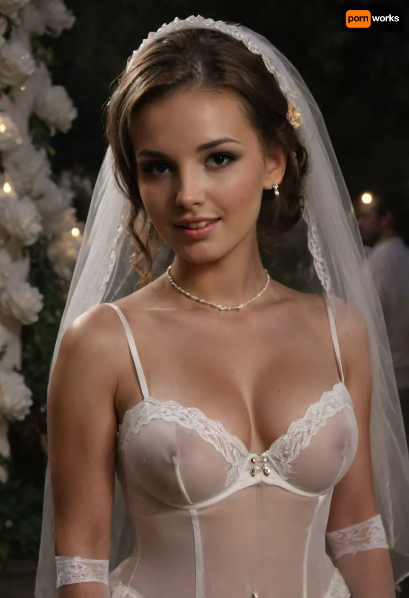 high resolution, high quality, dark scene at night, closeup of face, cute Devon, smile, pearl choker, pearl earrings, (brunette Hair in elaborate updo:1.4), (standing model posing, (wedding dress:1.2), (sheer white corset:1.2), (wedding veil:1.3), (white lace gloves), nipslip, very cute, smile, out of focus colorful flowers in a romantic outdoor background, outdoors, 3 men behind her, on, face, bukkake, cum), bellissima, downblouse, nipslip, d3v0n, 1woman, clothes, seethru, <lora:LesFemmesXL_v1.0:1.5>, <lora:dark:.4>, <lora:RealDownblouseXL2:.9>, <lora:Devon:1.4>, <lora:seethruv3_SDXL:.5> high resolution, high quality, dark scene at night, closeup of face, cute Devon, smile, pearl choker, pearl earrings, (brunette Hair in elaborate updo:1.4), (standing model posing, (wedding dress:1.2), (sheer white corset:1.2), (wedding veil:1.3), (white lace gloves), nipslip, very cute, smile, out of focus colorful flowers in a romantic outdoor background, outdoors, 3 men behind her, on, face, bukkake, cum), bellissima, downblouse, nipslip, d3v0n, 1woman, clothes, seethru, <lora:LesFemmesXL_v1.0:1.5>, <lora:dark:.4>, <lora:RealDownblouseXL2:.9>, <lora:Devon:1.4>, <lora:seethruv3_SDXL:.5>
