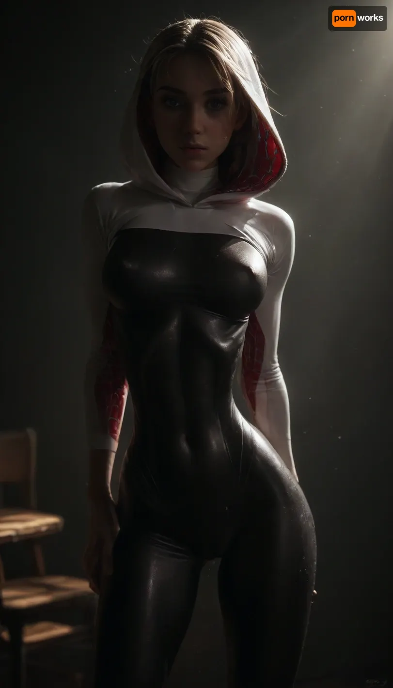 (((18 years old))), (((young))), (spider girl Gwen Stacy), Braided side Side Cornrows white Hair, (seductive shy face), (bright lighting and high exposure of her face and body:1.5), ((tight outfit)), (athletic body:1.3), (athletic abs and legs:1.3), (hip gap:1.3), wide hips, (narrow waist:1.6), (white hair), (view from front:1.6), sitting into the office chair, (makeup), ((pussy cameltoe:1.3)), (wet oiled clothes), (makeup:1.4), (oiled skin:1.7), (wet tight bodysuit:1.8), hand, 1girl, (athletic ass), (high detailed face:1.5), dim lights, (hard nipples:1.3), (big perky boobs:1.4), big breast, (chiaroscuro lighting:.3), <lora:HandFineTuning_XL:1>, <lora:MGLRbodysuit_sdxl:.6>, <lora:uberfit_lora_sdxl:.4>, <lora:dark:.3>, <lora:M0llY_PARK3R-000001:.8> (((18 years old))), (((young))), (spider girl Gwen Stacy), Braided side Side Cornrows white Hair, (seductive shy face), (bright lighting and high exposure of her face and body:1.5), ((tight outfit)), (athletic body:1.3), (athletic abs and legs:1.3), (hip gap:1.3), wide hips, (narrow waist:1.6), (white hair), (view from front:1.6), sitting into the office chair, (makeup), ((pussy cameltoe:1.3)), (wet oiled clothes), (makeup:1.4), (oiled skin:1.7), (wet tight bodysuit:1.8), hand, 1girl, (athletic ass), (high detailed face:1.5), dim lights, (hard nipples:1.3), (big perky boobs:1.4), big breast, (chiaroscuro lighting:.3), <lora:HandFineTuning_XL:1>, <lora:MGLRbodysuit_sdxl:.6>, <lora:uberfit_lora_sdxl:.4>, <lora:dark:.3>, <lora:M0llY_PARK3R-000001:.8>