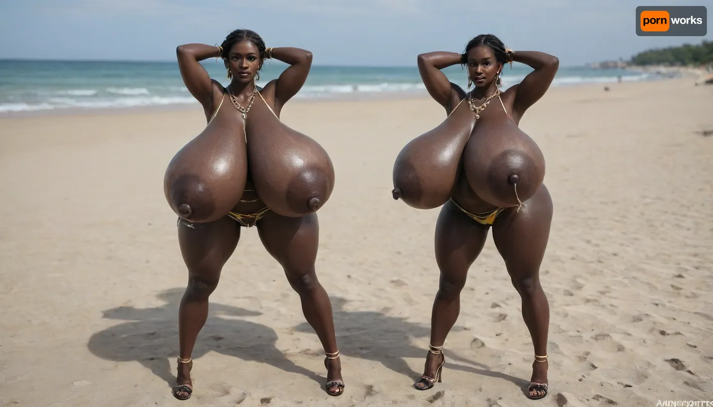 (absolutely black skin:1.55), (gigantic massive huge tits slender beauty model on the beach:1.35), (incredibly floppy saggy tits:1.85), (very large very dark areolae:1.55), erect nipples, seduction, model with full body and face, ((groping tits and ass)), very high plateau heels, ((bikini)), (belly chain, anklet, bracelet, jewelry, necklace), ((micro skirt)), oiled up, light hairy pussy, very detailed image, ultra high definition (absolutely black skin:1.55), (gigantic massive huge tits slender beauty model on the beach:1.35), (incredibly floppy saggy tits:1.85), (very large very dark areolae:1.55), erect nipples, seduction, model with full body and face, ((groping tits and ass)), very high plateau heels, ((bikini)), (belly chain, anklet, bracelet, jewelry, necklace), ((micro skirt)), oiled up, light hairy pussy, very detailed image, ultra high definition