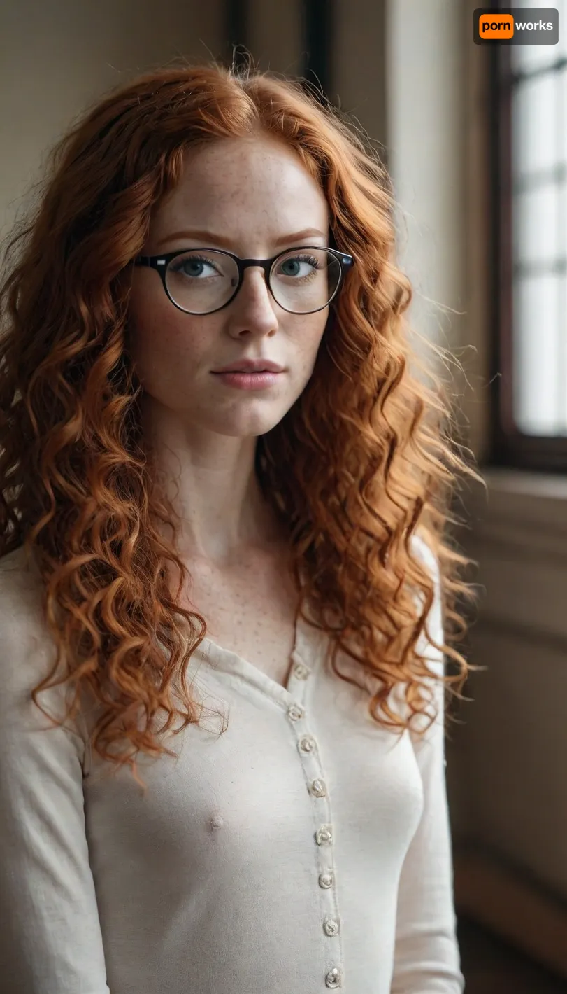 skinny woman, ginger, glasses, freckles, very long curly hair, <lora:cockteaseLoRASDXL:.5>