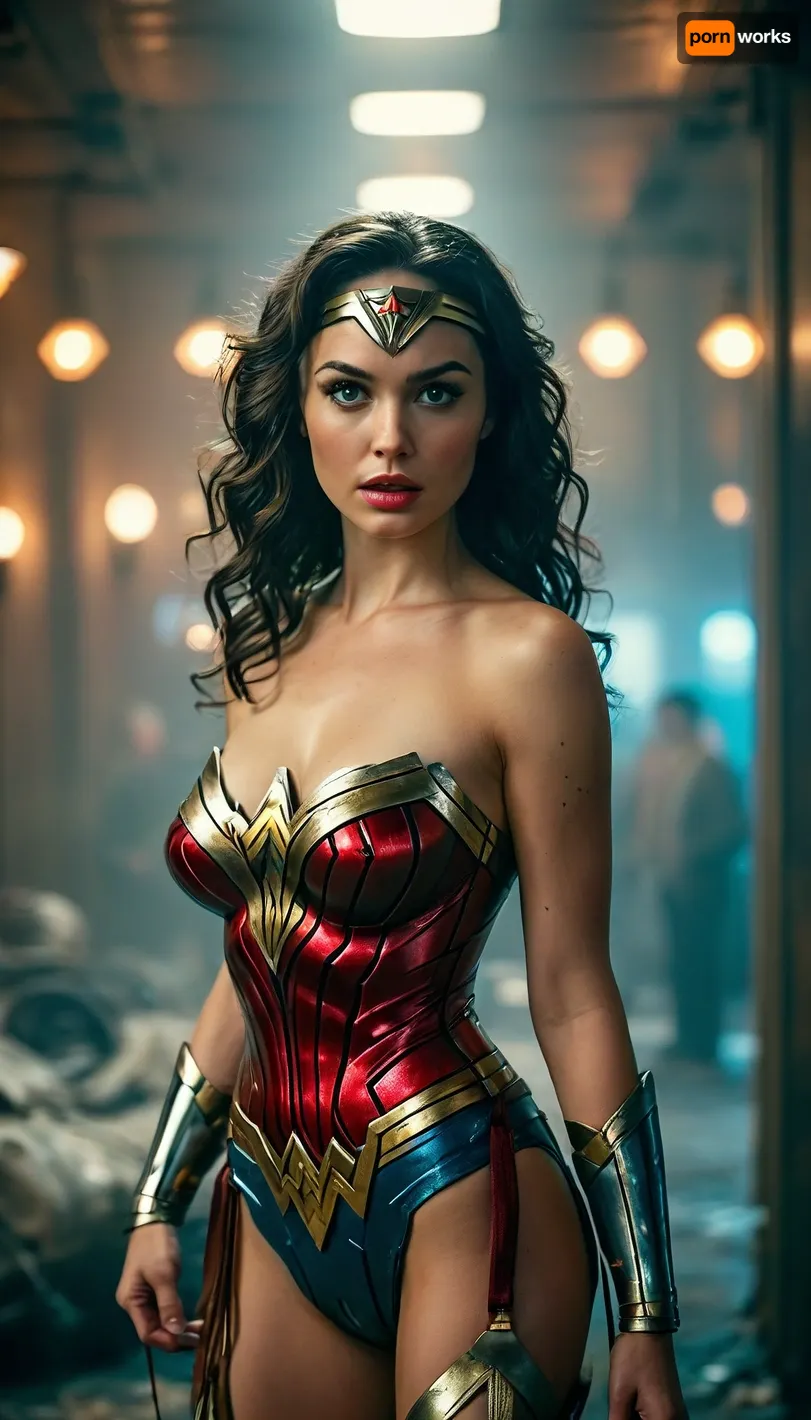 ((Movie poster for a 2100s SciFi movie version of Wonder Woman movie, sexy prostitute, cleavage, sexy legs, small breasts)), <lora:MJ52:.6>