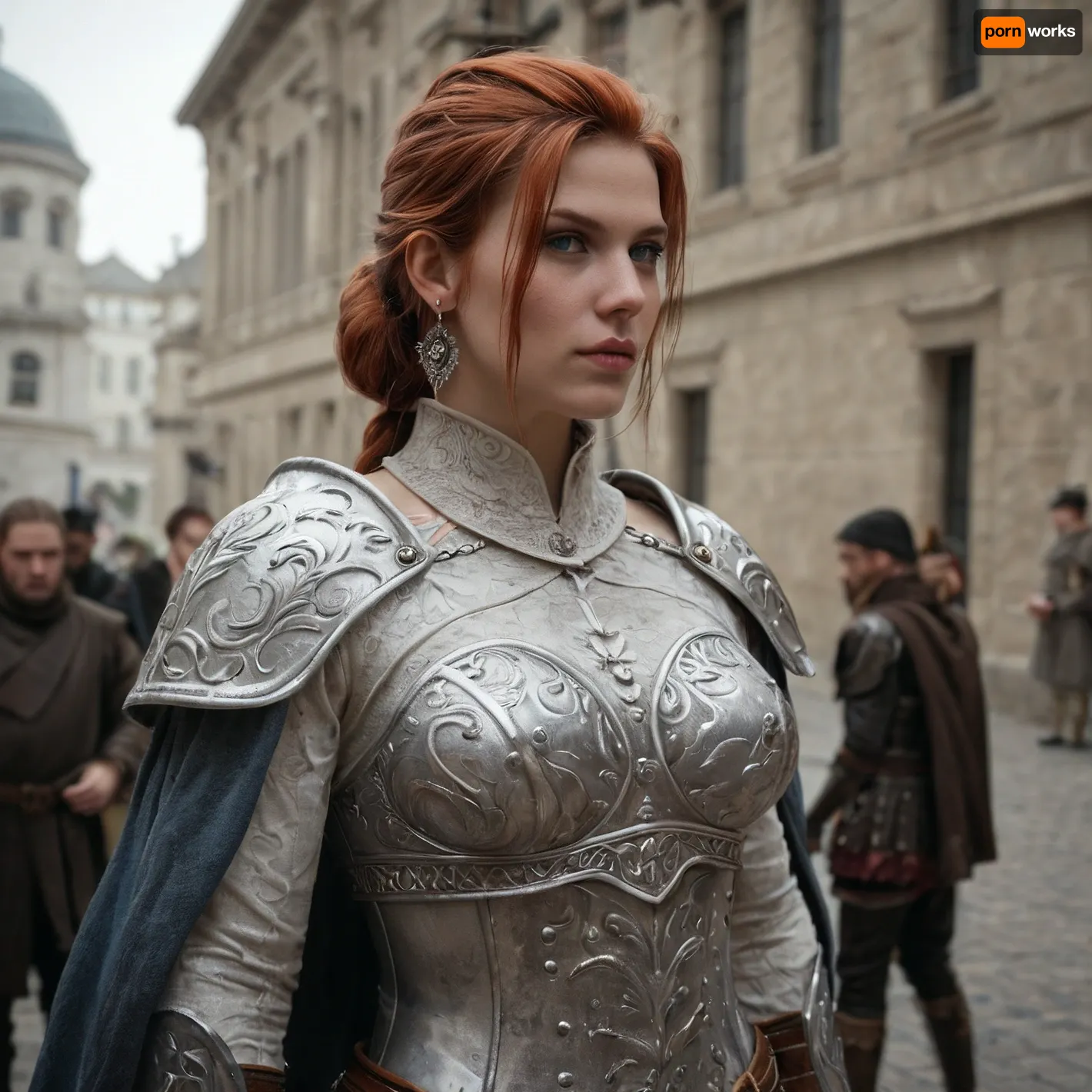 Aveline Vallen from Dragon Age II, tall and imposing warrior with a strong athletic build, fair skin, auburn hair tied back for battle, piercing blue eyes, expression stern but protective, large bimbo breasts. Wearing her iconic heavy armor, steel plate with red and silver detailing, cloak bearing Kirkwall’s crest. Standing proudly in a city courtyard or atop Kirkwall’s walls. Ultra-realistic high fantasy art, highly detailed, cinematic heroic atmosphere, commanding and noble presence. Aveline Vallen from Dragon Age II, tall and imposing warrior with a strong athletic build, fair skin, auburn hair tied back for battle, piercing blue eyes, expression stern but protective, large bimbo breasts. Wearing her iconic heavy armor, steel plate with red and silver detailing, cloak bearing Kirkwall’s crest. Standing proudly in a city courtyard or atop Kirkwall’s walls. Ultra-realistic high fantasy art, highly detailed, cinematic heroic atmosphere, commanding and noble presence.