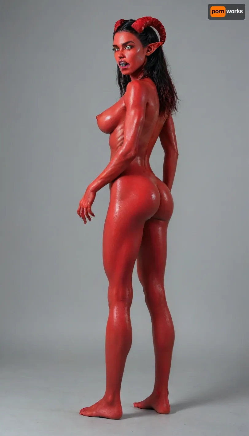 Nude, demonic woman, red wet skin, dynamic view, very black hair, Fear, horror, (strong back), sideboob, oiled skin, large breasts, raised nipples, erect nipples, (Standing on his feet), the curve of the back, detailed shadows, (full lips), toned, simple background, elf ears, high waisted leotard, Perfect Hands, (muscular female demon), (small inferno horns), (ram horns), (vibrant crimson skin:1.7), bold outlines, intricate shadows, highest detail, (fangs), NEGATIVE_HANDS, areola visible under clothing, front view, supermodel, top model face, gigantic, lips, Naked, full boby view, (skinny:1.5), (ass:1.55), His hands are hidden behind his back, ((full body)), lean body, wasp waist, SHOUTS LOUDLY, anger, screaming, angry, very wet sweaty body, (very skinny ass:1), legs spread wide apart, <lora:Beautify-Supermodel-SDXL:.8>, <lora:polyhedron_angry-000006:.2> Nude, demonic woman, red wet skin, dynamic view, very black hair, Fear, horror, (strong back), sideboob, oiled skin, large breasts, raised nipples, erect nipples, (Standing on his feet), the curve of the back, detailed shadows, (full lips), toned, simple background, elf ears, high waisted leotard, Perfect Hands, (muscular female demon), (small inferno horns), (ram horns), (vibrant crimson skin:1.7), bold outlines, intricate shadows, highest detail, (fangs), NEGATIVE_HANDS, areola visible under clothing, front view, supermodel, top model face, gigantic, lips, Naked, full boby view, (skinny:1.5), (ass:1.55), His hands are hidden behind his back, ((full body)), lean body, wasp waist, SHOUTS LOUDLY, anger, screaming, angry, very wet sweaty body, (very skinny ass:1), legs spread wide apart, <lora:Beautify-Supermodel-SDXL:.8>, <lora:polyhedron_angry-000006:.2>