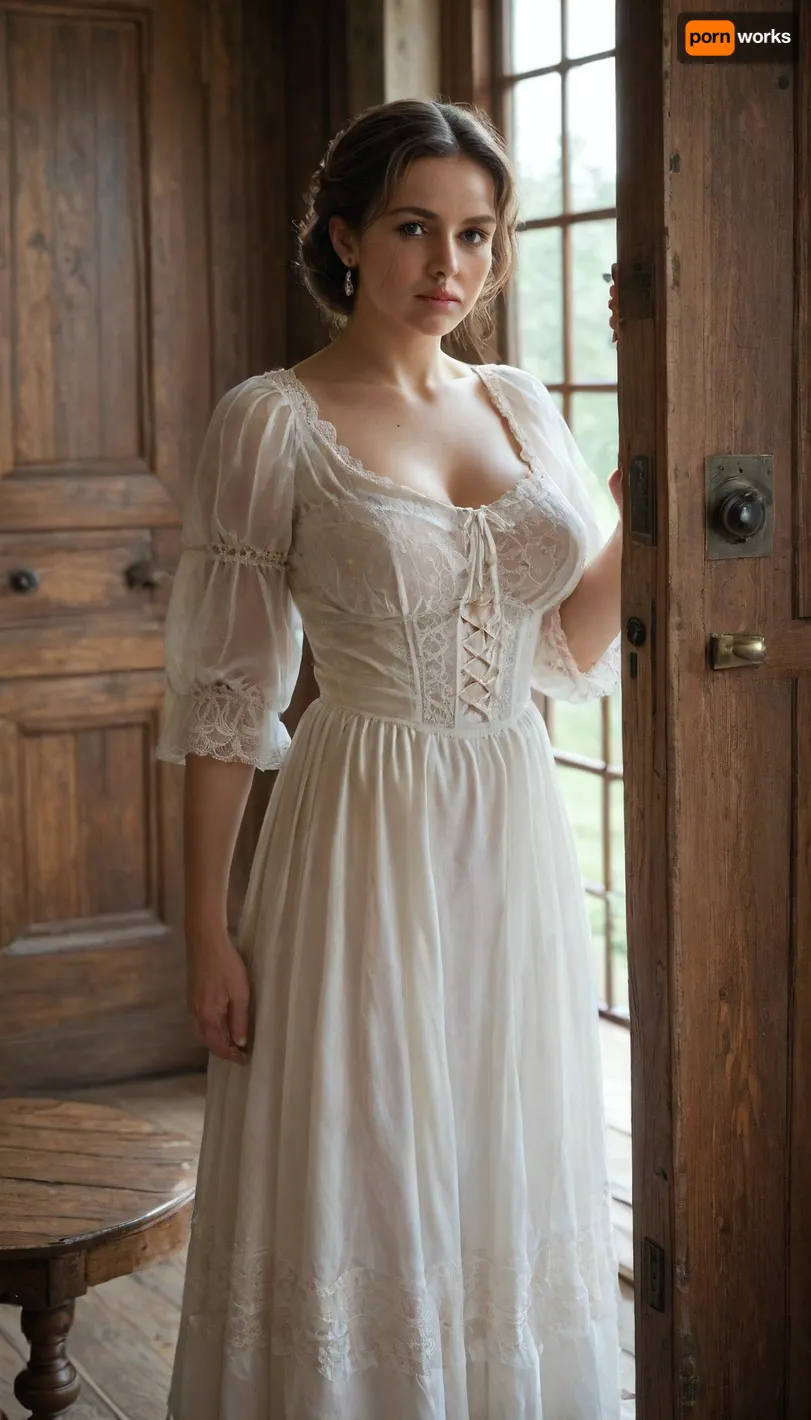 Victorian England, an old overgrown, unkempt park around a gloomy mansion, dusk, in a small clearing stands an old leaning wooden shack, the door to it is open, inside you can see a rough wooden bench and a rough wooden table, beautiful curvy milf, 45 year old, A confused look, novuschroma40, style, <lora:CBS_novuschroma40 style:1> Victorian England, an old overgrown, unkempt park around a gloomy mansion, dusk, in a small clearing stands an old leaning wooden shack, the door to it is open, inside you can see a rough wooden bench and a rough wooden table, beautiful curvy milf, 45 year old, A confused look, novuschroma40, style, <lora:CBS_novuschroma40 style:1>