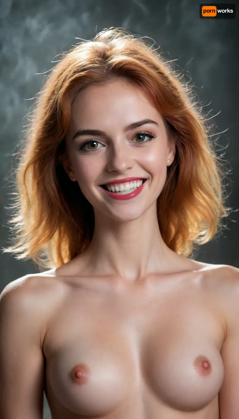 64k, HDR, UHD, dark, ginger, demon, solo, Close up, nude, wide smile, ((big smile:2)), moaning, (ideal symmetrical face), (((orgasm face:2))), fire, best quality, masterpiece, muscular body, 18yo, bald, red skin, (((wide eyed:2))), ((big eyes:1.5)), ((bright yellow eyes)), ((red eyewhite)), ((red eyeballs)), ((glossy eyes:1.5)), (((yellow horns))), fit, [abs], standing, looking at viewer, approaching perfection, dynamic pose, view 3/4, (highly detailed, artstation, concept art), sharp focus.