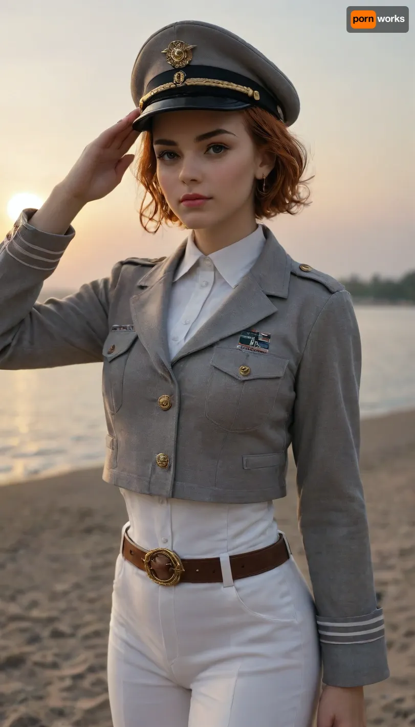 score_9, score_8_up, score_7_up, score_6_up, anime screencap, anime coloring, FGMatildaAdjan, 1girl, solo, brown eyes, short hair, hair slicked back, orange hair, lipstick, breasts, peaked cap, grey headwear, military uniform, grey jacket, belt, white pants, boots, yellow footwear, standing, upper body, facing viewer, salute, pov, closed mouth, looking at viewer, BREAK, dusk, sunset, outdoors, sunlight score_9, score_8_up, score_7_up, score_6_up, anime screencap, anime coloring, FGMatildaAdjan, 1girl, solo, brown eyes, short hair, hair slicked back, orange hair, lipstick, breasts, peaked cap, grey headwear, military uniform, grey jacket, belt, white pants, boots, yellow footwear, standing, upper body, facing viewer, salute, pov, closed mouth, looking at viewer, BREAK, dusk, sunset, outdoors, sunlight