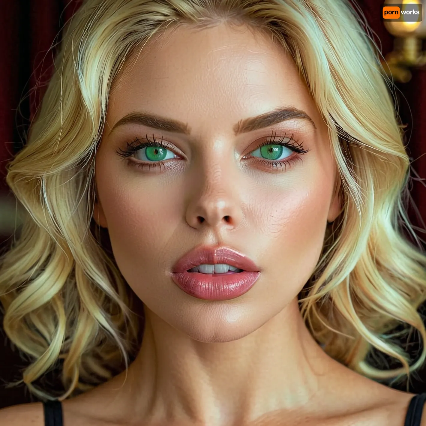 sexy slut blonde, sexy housewife blonde, strong blonde face, oval face, triangular face, perfect face, green eyes, big full lips and mouth, 4ng3l, face, <lora:SDXL_BetterFaces-LoRA_v1:.7>