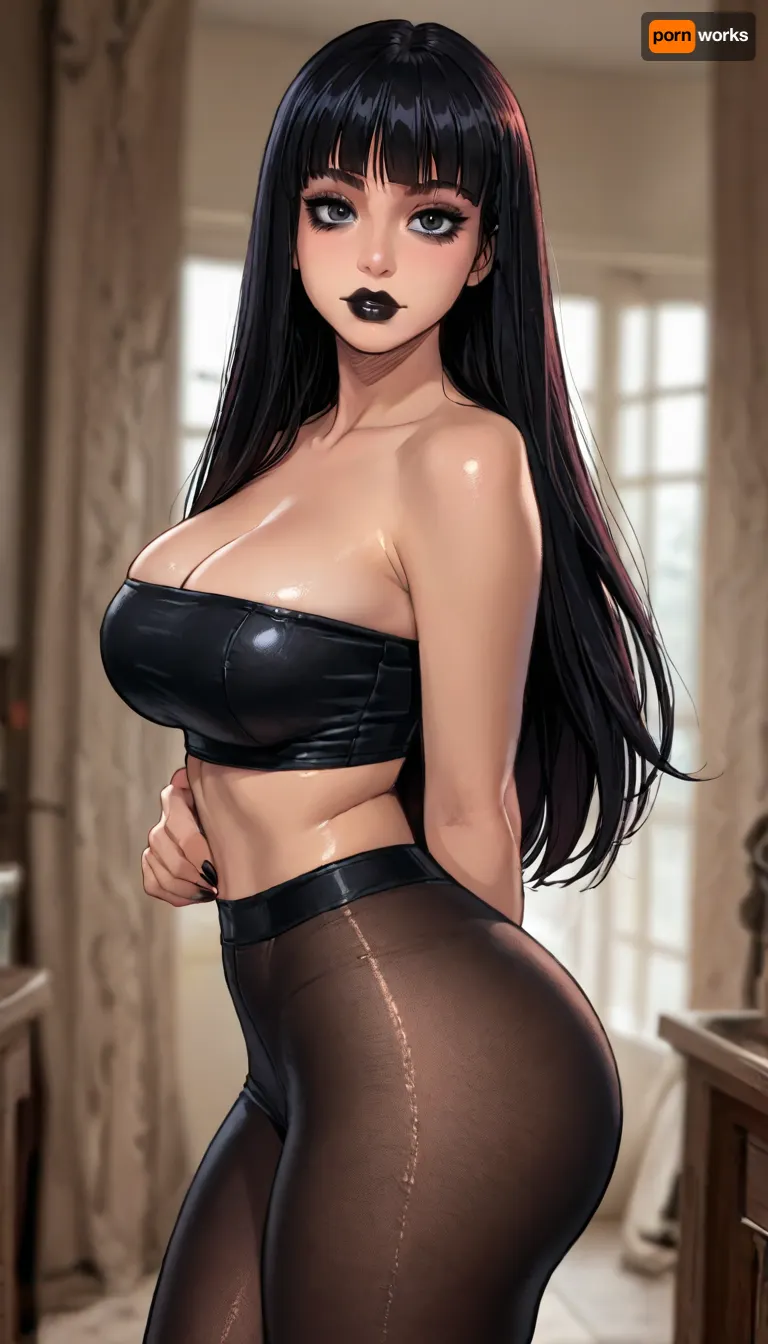 ((Melkor mancin style)), reiq style, masterpiece, (1woman), (dark skin:1.5), bimbo body, giant ass, perfect hourglass, giant breasts, goth makeup, black lipstick, ((very long black hair, fringe)), black tube top, black pantyhose, black fishnet, ratatatat74, <lora:ratatatat74-000050:.8>, <lora:LCMTurboMix_Euler_A_fix:.7>, <lora:焦茶_XL:1.8>, <lora:sola7764XL_V1:1.7>, <lora:Tsune_XL:1.5> ((Melkor mancin style)), reiq style, masterpiece, (1woman), (dark skin:1.5), bimbo body, giant ass, perfect hourglass, giant breasts, goth makeup, black lipstick, ((very long black hair, fringe)), black tube top, black pantyhose, black fishnet, ratatatat74, <lora:ratatatat74-000050:.8>, <lora:LCMTurboMix_Euler_A_fix:.7>, <lora:焦茶_XL:1.8>, <lora:sola7764XL_V1:1.7>, <lora:Tsune_XL:1.5>
