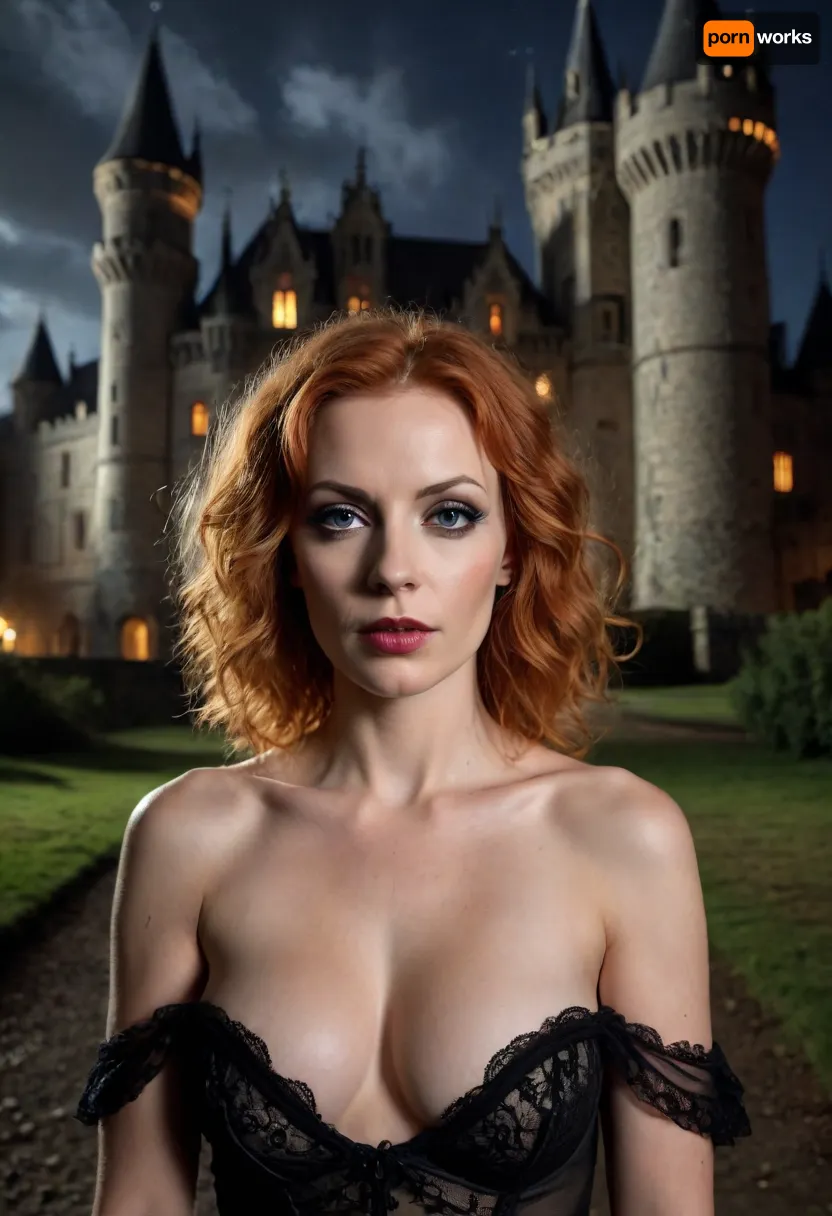 (((Anneke Van Giersbergen face))), strong make-up, pornography attitude, prostitute style, topless, gothic castle by night background, plunging neckline, DonMV31l0fD4rkn355XL, <lora:DonMV31l0fD4rkn355XL:1.1>