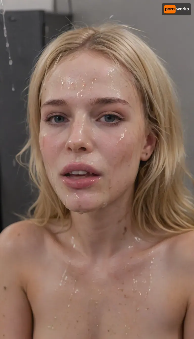 full portrait of pretty polish woman kneeling, ((very cute 30 years old)), tall and. very skinny, cheeky smile, ((high detailed skin)), high quality, detailed skin texture, (highly detailed hair), ((skinny body)), ((slim body)), (realistic), soft focus, insanely detailed, highest quality, ((short tight clothes)), naked waist, ((excessive cum on face:1.8)), bukkake facial, lots of cum drips, lots of cum, 4ng3l, ((blonde hair)), woman, cum, on, face, <lora:SDXL_BetterFaces-LoRA_v1:.6>, <lora:JustCum:1.4>