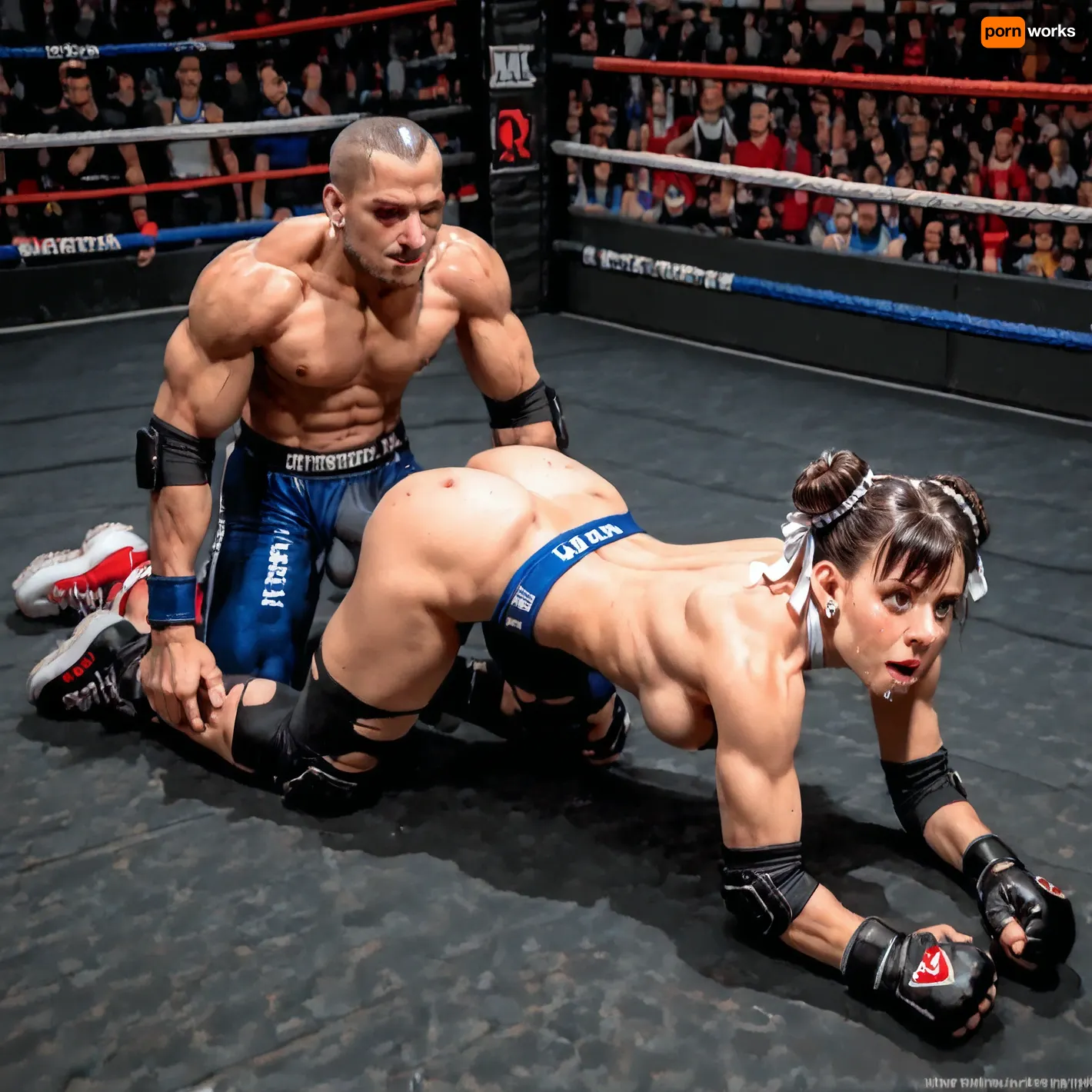 8K, uhd, hyper-realistic, photorealism, masterpiece, (detailed face and eyes:1.3), (photorealistic face and eyes:1.3), (1man, 1woman), (open eyes:1.2), (a wrestling match between an athletic woman and a lean man has ended in defeat for the woman, her punishment is getting fucked aggressively in a boxing ring with spectators on all sides, the man has pinned her to the mat in a twisted body position and is fucking her ass and pussy:1.1), (very lean man:1.3), (man is similar height as woman), (big balls:1), (doggystyle), (foot on head:1.2), (head pinned down, ass up), (cock in pussy), (exhausted and defeated expression, tears:1.1), (torn sexy wrestling outfit:1.3), (torn lycra tights:1.3), (knee pads, elbow pads, wrestling shoes), view from above, overfit, style, (overfit, style:2), (style:4), PUT, OVERFIT, STYLE, IN, NEGATIVE, PROMPT>, Chun, <lora:EasyFix:.8>, <lora:Chun-Li-Pony:1.3> 8K, uhd, hyper-realistic, photorealism, masterpiece, (detailed face and eyes:1.3), (photorealistic face and eyes:1.3), (1man, 1woman), (open eyes:1.2), (a wrestling match between an athletic woman and a lean man has ended in defeat for the woman, her punishment is getting fucked aggressively in a boxing ring with spectators on all sides, the man has pinned her to the mat in a twisted body position and is fucking her ass and pussy:1.1), (very lean man:1.3), (man is similar height as woman), (big balls:1), (doggystyle), (foot on head:1.2), (head pinned down, ass up), (cock in pussy), (exhausted and defeated expression, tears:1.1), (torn sexy wrestling outfit:1.3), (torn lycra tights:1.3), (knee pads, elbow pads, wrestling shoes), view from above, overfit, style, (overfit, style:2), (style:4), PUT, OVERFIT, STYLE, IN, NEGATIVE, PROMPT>, Chun, <lora:EasyFix:.8>, <lora:Chun-Li-Pony:1.3>