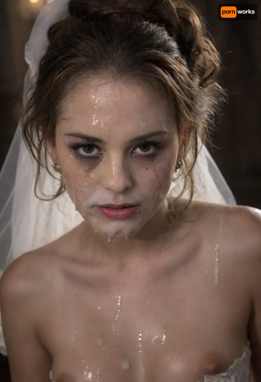 high resolution, high quality, closeup of face, well-lit cute brunette woman 42 years old, smile, pearl necklace, pearl earrings, (Hair up in elaborate bun:1.4), (((ropes of thick visible cum on her face:1.6))), cum dripping from face, cum on cleavage, (standing model posing, (wedding dress:1.2), (white corset:1.2), (wedding veil:1.3), (white lace gloves), very cute, smile, out of focus colorful flowers in a romantic outdoor background, on, face, bukkake, cum), bukkake, woman, bellissima, 1girl, <lora:MS_Real_XL_Bukkake:2>, <lora:JustCum:2>, <lora:dark:.3>, <lora:Wet_Makeup__Runny_Mascara-000006:1.6>, <lora:LesFemmesXL_v1.0:1.5> high resolution, high quality, closeup of face, well-lit cute brunette woman 42 years old, smile, pearl necklace, pearl earrings, (Hair up in elaborate bun:1.4), (((ropes of thick visible cum on her face:1.6))), cum dripping from face, cum on cleavage, (standing model posing, (wedding dress:1.2), (white corset:1.2), (wedding veil:1.3), (white lace gloves), very cute, smile, out of focus colorful flowers in a romantic outdoor background, on, face, bukkake, cum), bukkake, woman, bellissima, 1girl, <lora:MS_Real_XL_Bukkake:2>, <lora:JustCum:2>, <lora:dark:.3>, <lora:Wet_Makeup__Runny_Mascara-000006:1.6>, <lora:LesFemmesXL_v1.0:1.5>
