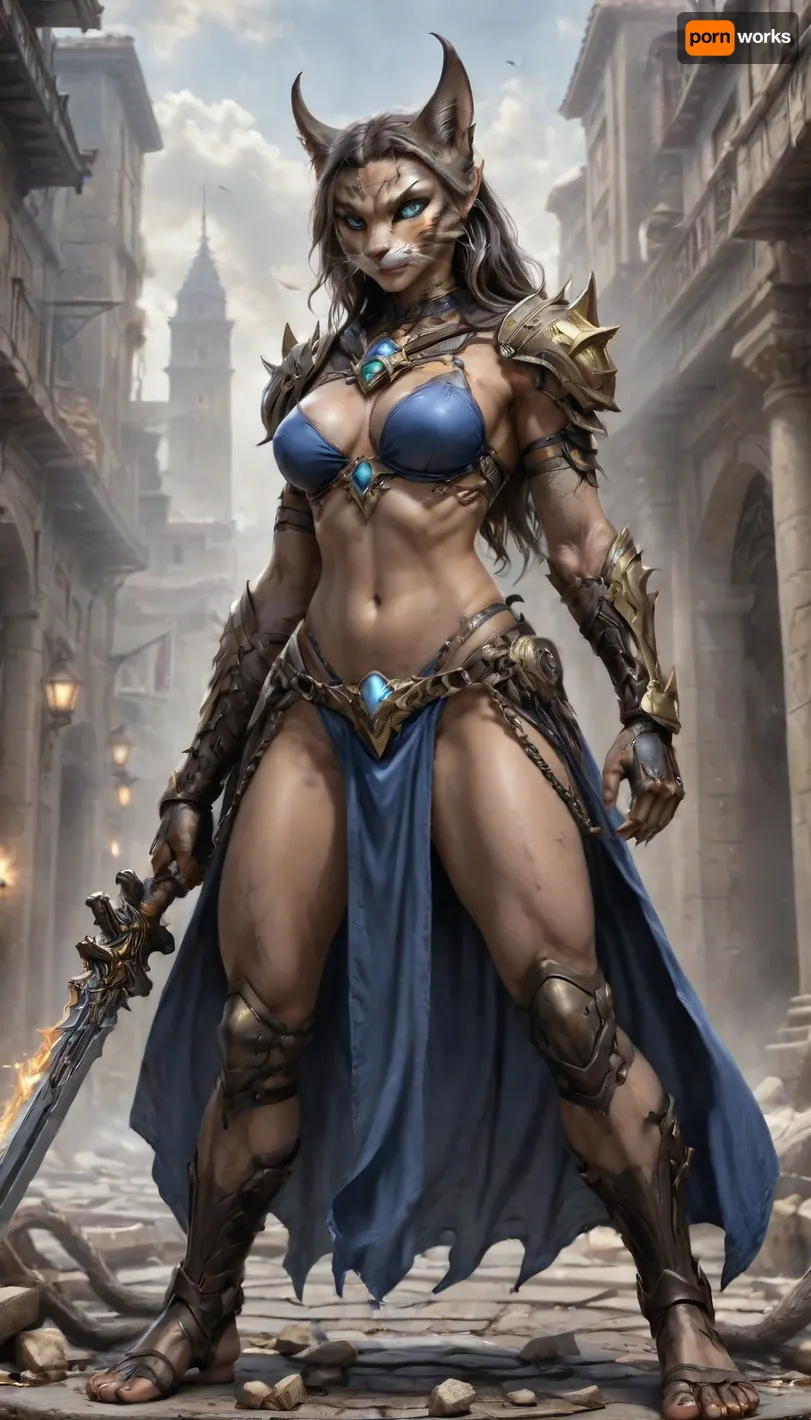 charactor card for TTRPG Guilded frame, Marvel comic Style Cover Art Concept for Elyndra, The Wind Vanguard, (photorealistic), World of warcraft art style Visual Elements, Main Character – Egyptian style female human cat hybrid warrior, (world of warcraft art), wearing sexy blue and goild bikini armor. Her loincloth flowed with the slightest move or step she took hanging off her hips. silver chains decorates her arms and thighs as well. Her feet were dressed in sandals with straps, (comic book style), standing on a pile of bones and rubble, apocalyptic background, standing at edge of colossal underground abyss, glowing Hash-Nass hive below shaped like a malignant star, scale emphasizing inevitability and threat STYLE LOCK, (Epic dark fantasy illustration, mythic science-fantasy tone, painterly realism, Luis Royo inspired, dramatic lighting, high contrast, rich textures, flowing fabrics, ancient technology disguised as divine artifacts, cinematic composition, ultra-detailed, sharp focus, no modern elements, no text, no watermark), high contrast black and white, only one character, no horns, braided, Art, by, Boris, Vallejo, feline_hybrid, furry, <lora:Mecha_Ggorgeous_Armor-000011:1.3>, <lora:Braided_Sides_V1:1.8>, <lora:Fantasy_art_XL_V1:1.4>, <lora:Realistic_Feline_Hybrids:1.6> charactor card for TTRPG Guilded frame, Marvel comic Style Cover Art Concept for Elyndra, The Wind Vanguard, (photorealistic), World of warcraft art style Visual Elements, Main Character – Egyptian style female human cat hybrid warrior, (world of warcraft art), wearing sexy blue and goild bikini armor. Her loincloth flowed with the slightest move or step she took hanging off her hips. silver chains decorates her arms and thighs as well. Her feet were dressed in sandals with straps, (comic book style), standing on a pile of bones and rubble, apocalyptic background, standing at edge of colossal underground abyss, glowing Hash-Nass hive below shaped like a malignant star, scale emphasizing inevitability and threat STYLE LOCK, (Epic dark fantasy illustration, mythic science-fantasy tone, painterly realism, Luis Royo inspired, dramatic lighting, high contrast, rich textures, flowing fabrics, ancient technology disguised as divine artifacts, cinematic composition, ultra-detailed, sharp focus, no modern elements, no text, no watermark), high contrast black and white, only one character, no horns, braided, Art, by, Boris, Vallejo, feline_hybrid, furry, <lora:Mecha_Ggorgeous_Armor-000011:1.3>, <lora:Braided_Sides_V1:1.8>, <lora:Fantasy_art_XL_V1:1.4>, <lora:Realistic_Feline_Hybrids:1.6>