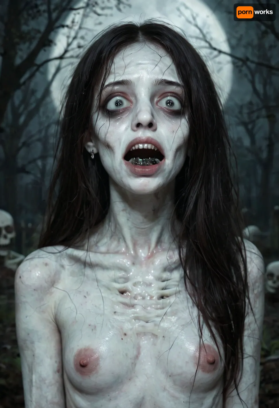 woman ghost, creepy female ghost, horrying cute face, horror female ghost, white pale spectral skin, white skin, bones, horrorfying face, the girl from the well, pale as white woman, long black straight hair, terrifying face, scary face, bizarre and frightening ghost, dark black hair, creepy aura, she is an abandoned horror place, skinny, so skinny, realistic, pale skin, naked, very realistic, TheRing1024, <lora:TheRing1024:.8>
