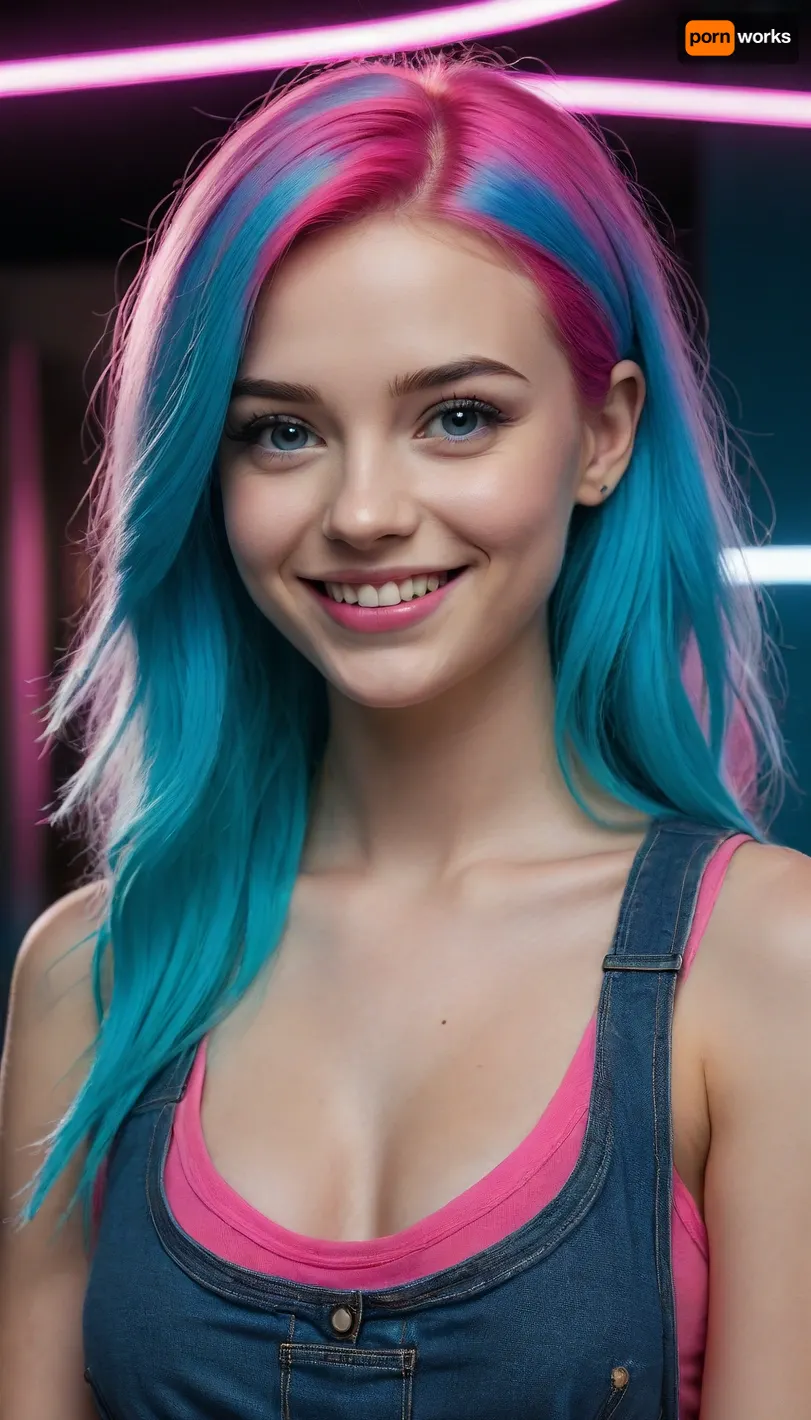 (((full length))), (((Draw a realistic portrait of a girl with a smile and long hair in high resolution))), (Make sure she is standing in the full-face position and has a charming blush on her cheeks), (Create an image of a character with neon pink hair), (neon blue eyes), (The character should have bright neon pink hair that stands out noticeably), (Their eyes should be a bright neon blue shade, adding an exciting visual element), (Make sure that these two characteristics stand out in the overall composition), (Be creative to include additional elements, complementing the neon color palette), (((full-size))), science, fiction, room, <lora:PAseer-SDXL-ScienceRoomV1:.5>
