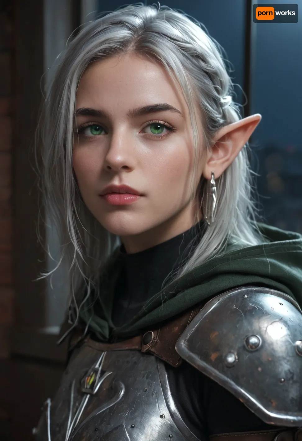 realistic female elf rogue, sharp long ears, silver hair, green eyes, sleek skimpy leather armor, hood partially covering face, night, darkness, sneaking in through a moonlit window, shadows and dramatic lighting, stealthy and tense atmosphere, photorealism, ultra-detailed, 8k, masterpiece, best quality realistic female elf rogue, sharp long ears, silver hair, green eyes, sleek skimpy leather armor, hood partially covering face, night, darkness, sneaking in through a moonlit window, shadows and dramatic lighting, stealthy and tense atmosphere, photorealism, ultra-detailed, 8k, masterpiece, best quality