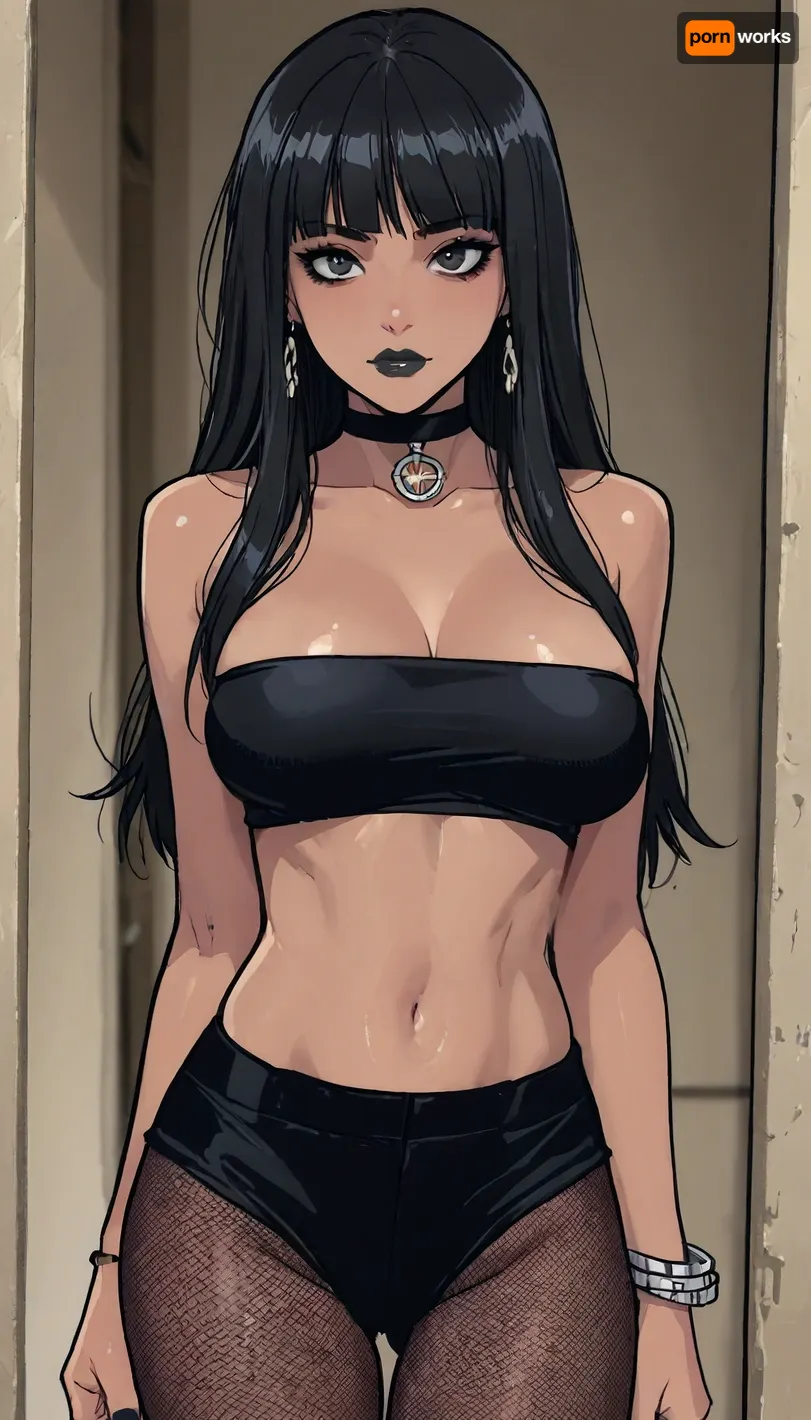 ((Melkor mancin meet markgavatino style)), reiq style, masterpiece, (1woman, 8k resolution, ultra-detailed), (dark skin:1.5), bimbo body, giant ass, perfect hourglass, giant breasts, goth makeup, black lipstick, ((very long black hair, fringe)), black tube top, black pantyhose, black fishnet, ratatatat74, <lora:ratatatat74-000050:.8>, <lora:LCMTurboMix_Euler_A_fix:.7>, <lora:mk_Bp Anime_xl:1.6>, <lora:焦茶_XL:1.8>, <lora:EnvyPastelAnimeXL01:1.5> ((Melkor mancin meet markgavatino style)), reiq style, masterpiece, (1woman, 8k resolution, ultra-detailed), (dark skin:1.5), bimbo body, giant ass, perfect hourglass, giant breasts, goth makeup, black lipstick, ((very long black hair, fringe)), black tube top, black pantyhose, black fishnet, ratatatat74, <lora:ratatatat74-000050:.8>, <lora:LCMTurboMix_Euler_A_fix:.7>, <lora:mk_Bp Anime_xl:1.6>, <lora:焦茶_XL:1.8>, <lora:EnvyPastelAnimeXL01:1.5>