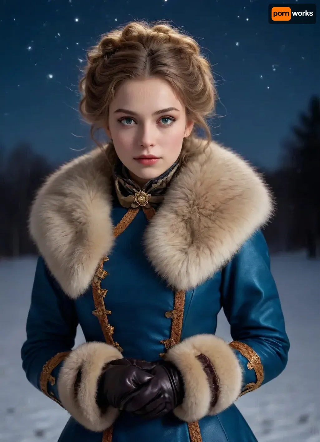 night, (The starry sky:1.5), young woman, She is dressed in the latest fashion of the 1880s, coat decorated with fur and ribbons, a muff and thin leather gloves. Her look is regal, mysterious and a little sad, "Swedish" gloves made of the finest leather, a "Skobelev" coat decorated with sable fur and blue satin ribbons, a muff, a gold bracelet, all these are fashionable details of women's clothing of the 1880s, claiming expensive elegance, dark, chiaroscuro, low-key, <lora:[SD XL1.0 LoRa] Star Shadow 星影 ほしかげ Concept:1.9>, <lora:zavy-cntrst-sdxl:1.4>