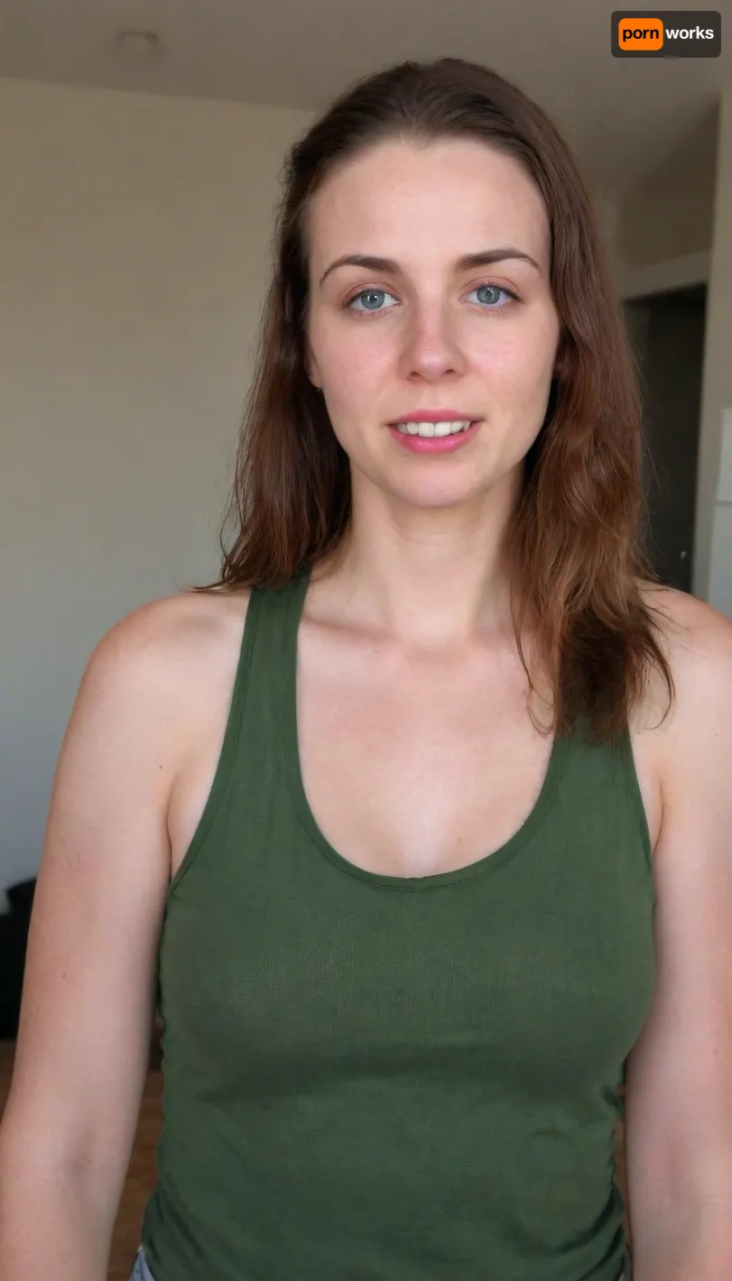 Detailed photograph of an ugly Irish mom with a pimpled face and saggy tits, realistic detailed face, realistic detailed skin, wearing an oversized loose tank top, with her breasts hanging in the arm hole, <lora:sagging-000015:2>, Detailed, natural, skin, blemishes, without-makeup, pimples, <lora:skin_4-000015:.8>